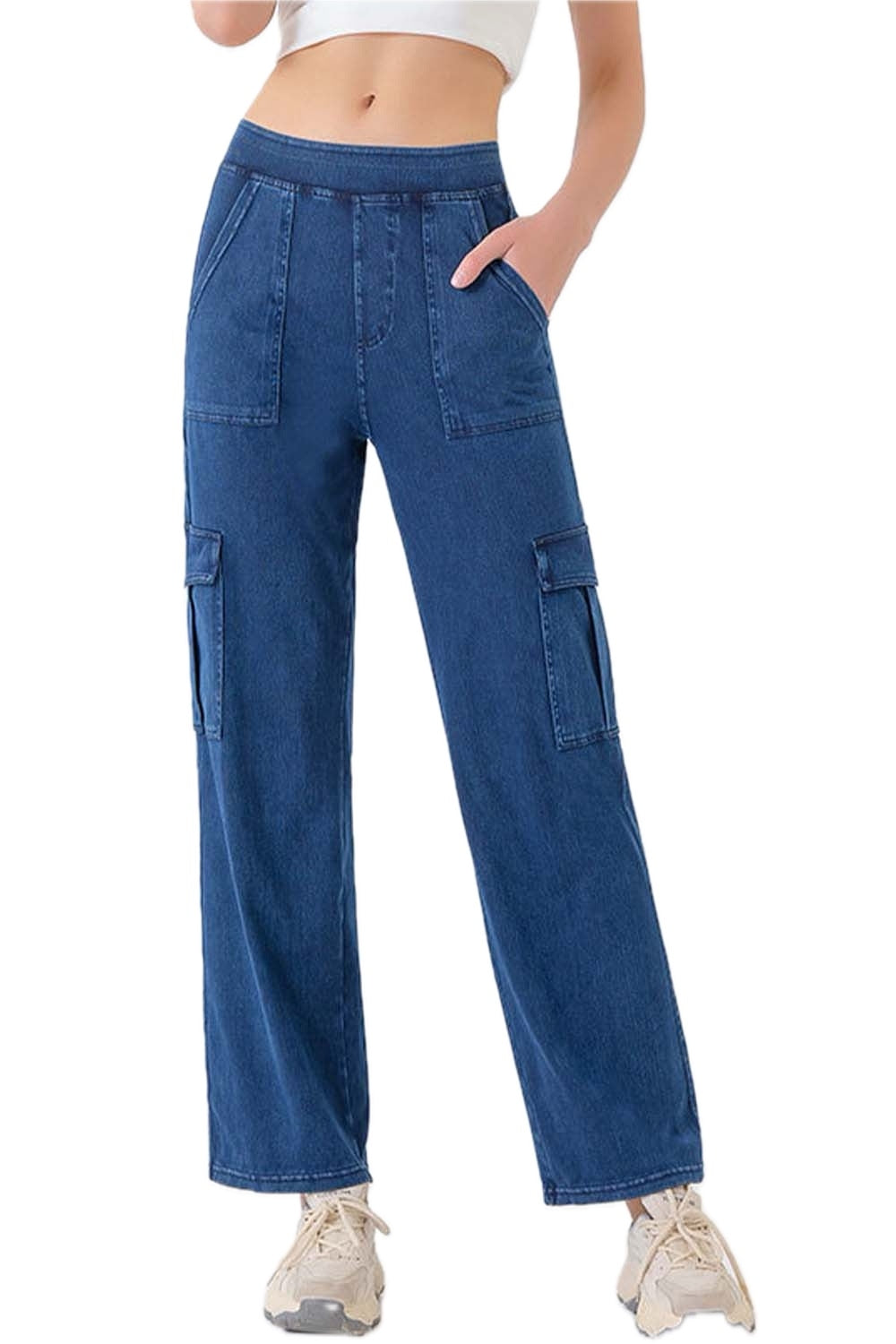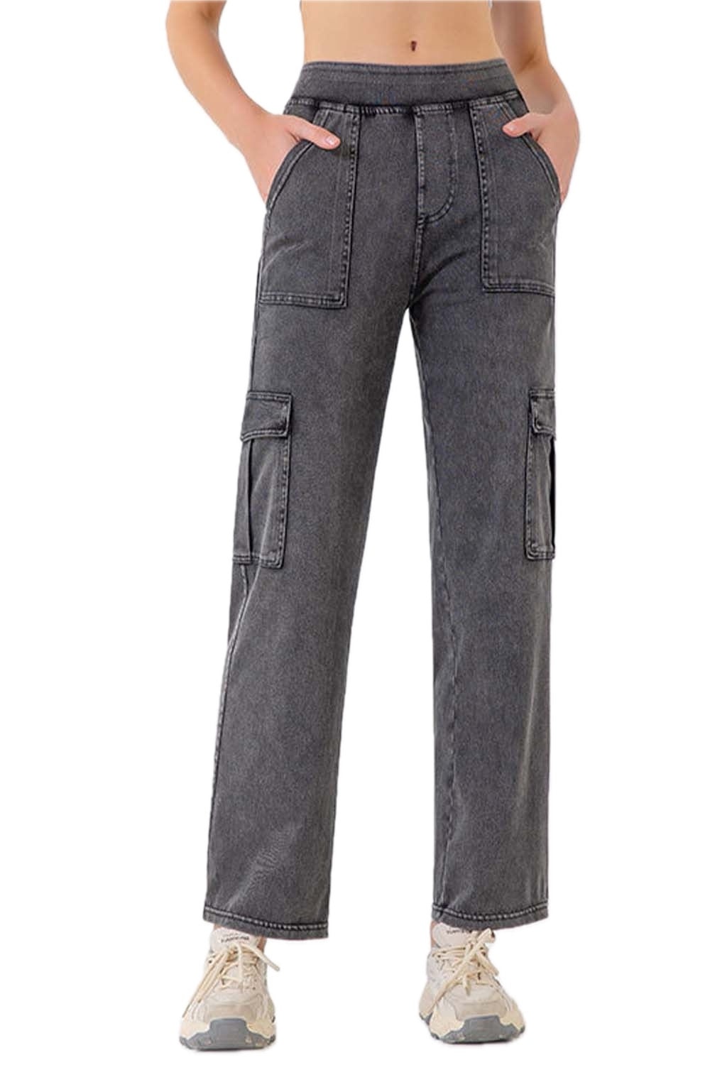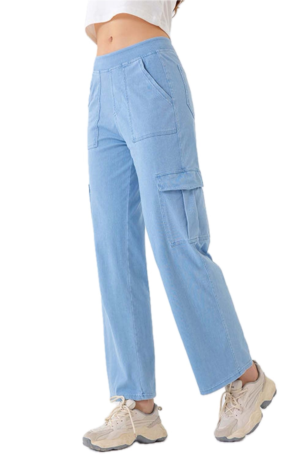 Women Buttoned Pocketed Washed Long Jeans Casual Everyday Denim Pants Moderate Stretch Durable Modern Fit Soft Feel
