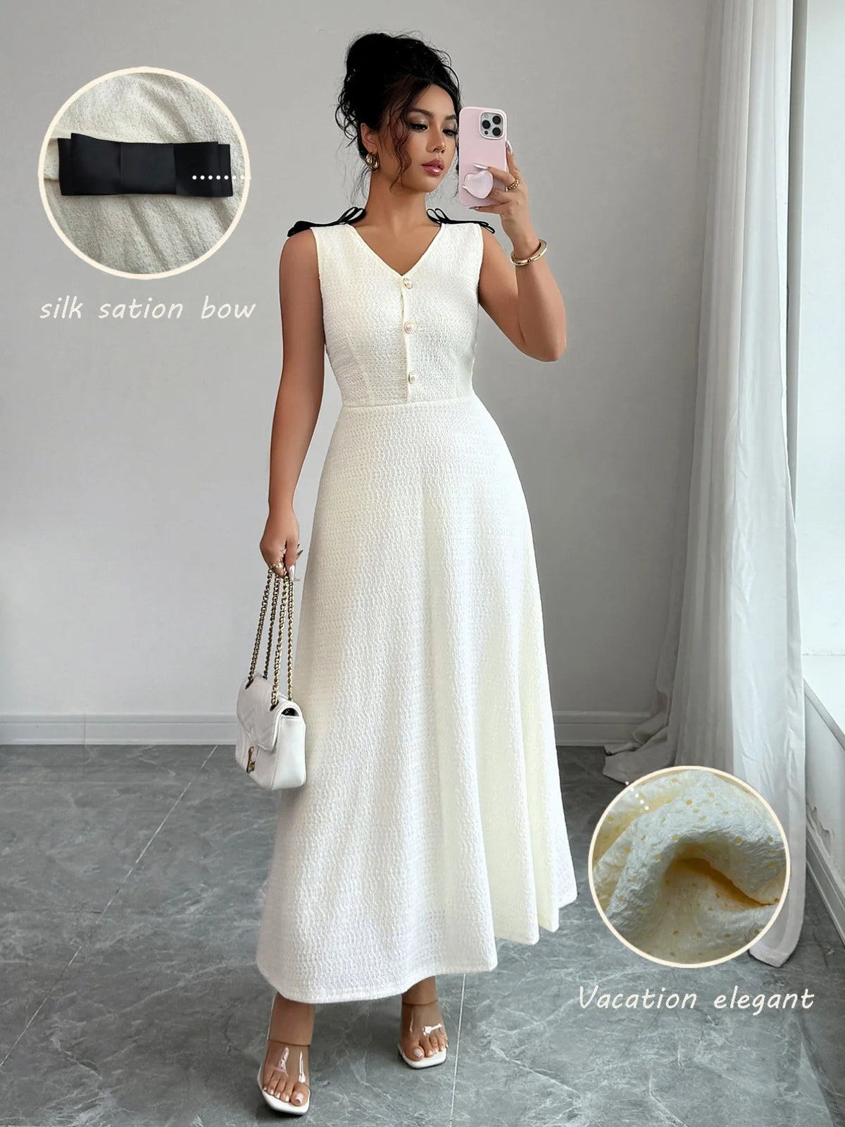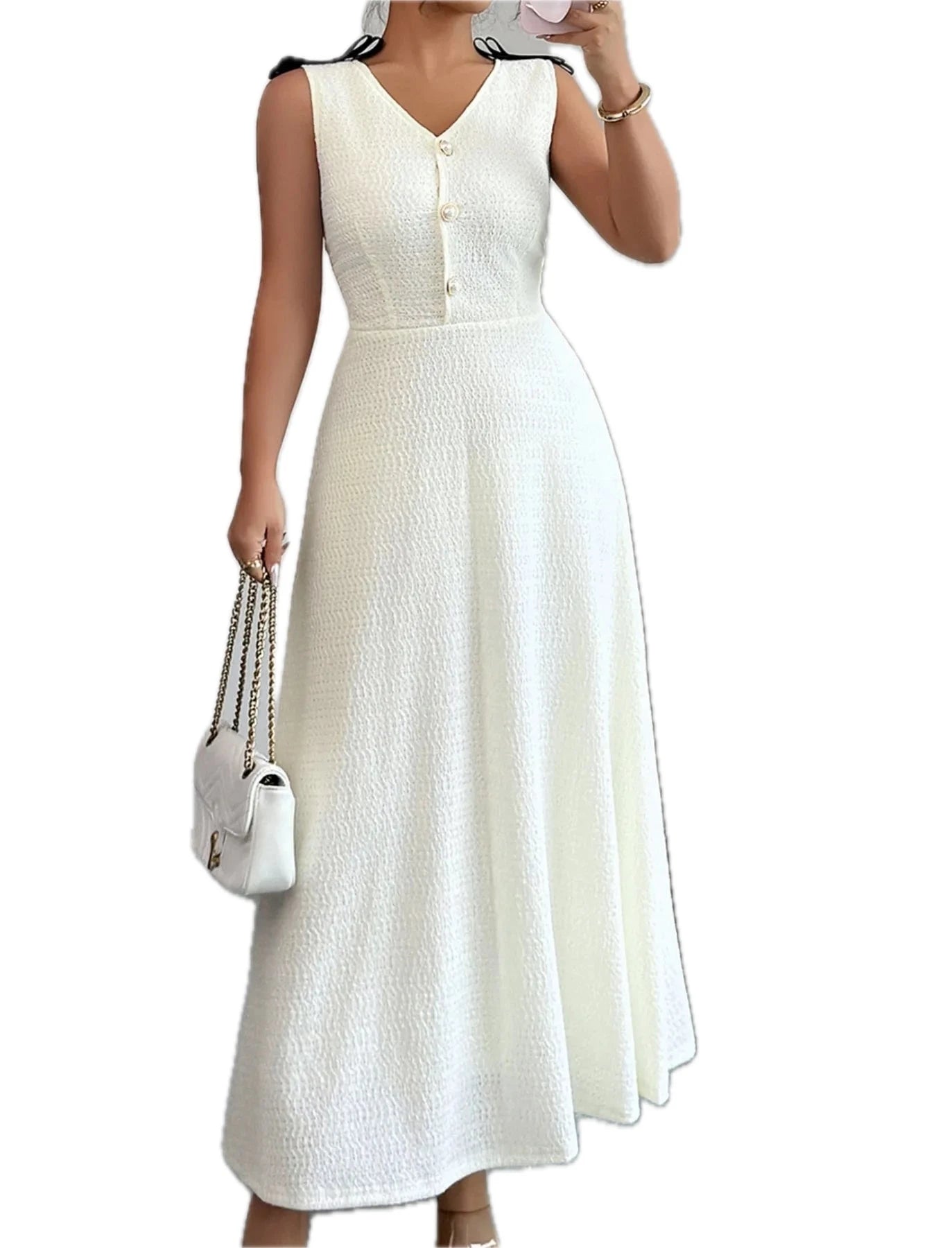 Women's Buttoned Sleeveless Maxi Tank Dress with Lined Bodice and Comfortable Fit 95% Polyester 5% Elastane Machine Wash