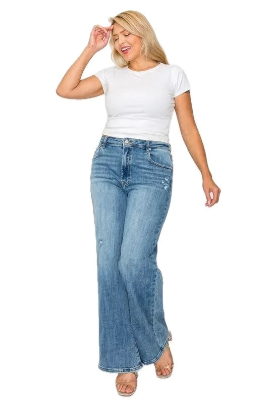 Plus Size High Rise Wide Leg Jeans with Stretch Denim Flare and Functional Pockets for Everyday Wear for All Day Comfort