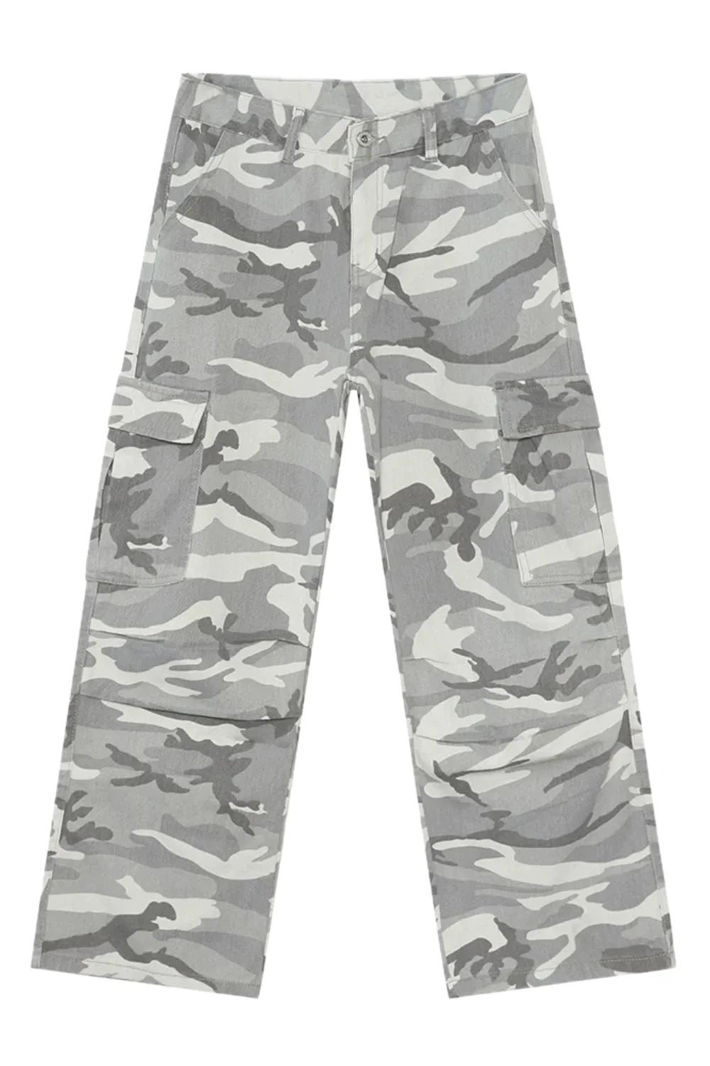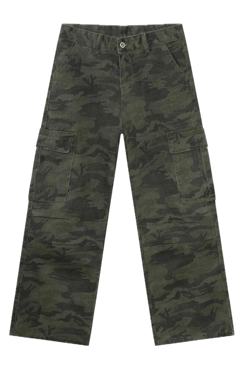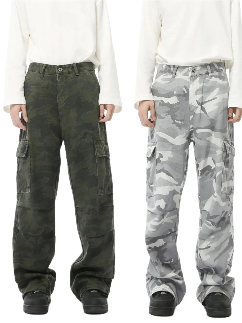 Mens Camouflage Cargo Jeans with Multiple Pockets Straight Leg Durable Denim Pants for Outdoor Casual Wear Rugged