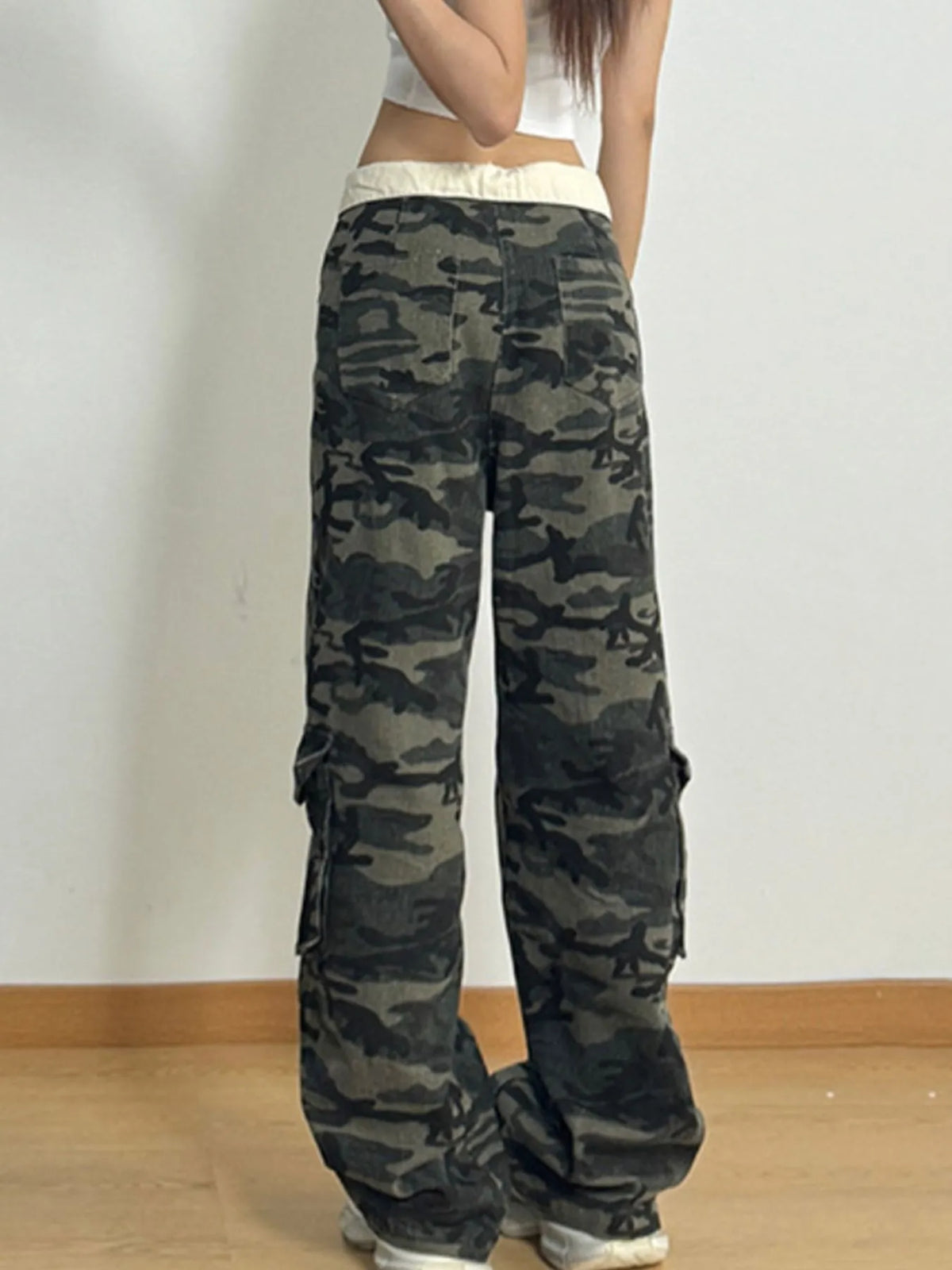 Womens Camouflage Relaxed Fit Jeans with Pockets Slightly Stretchy Durable Versatile Casual Pants for Everyday Wear All Day