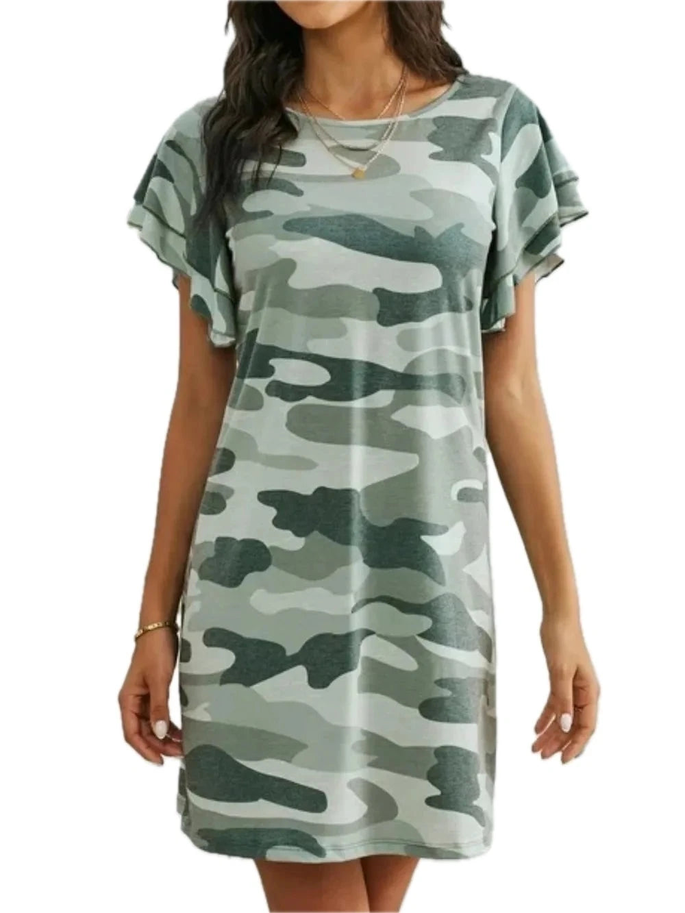 Women's Camouflage Round Neck Short Sleeve Mini Dress 95% polyester 5% elastane Soft Stretch Easy Care Everyday Wear