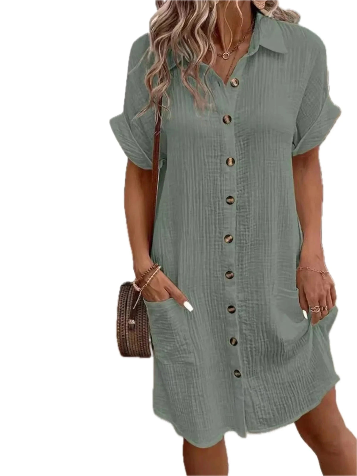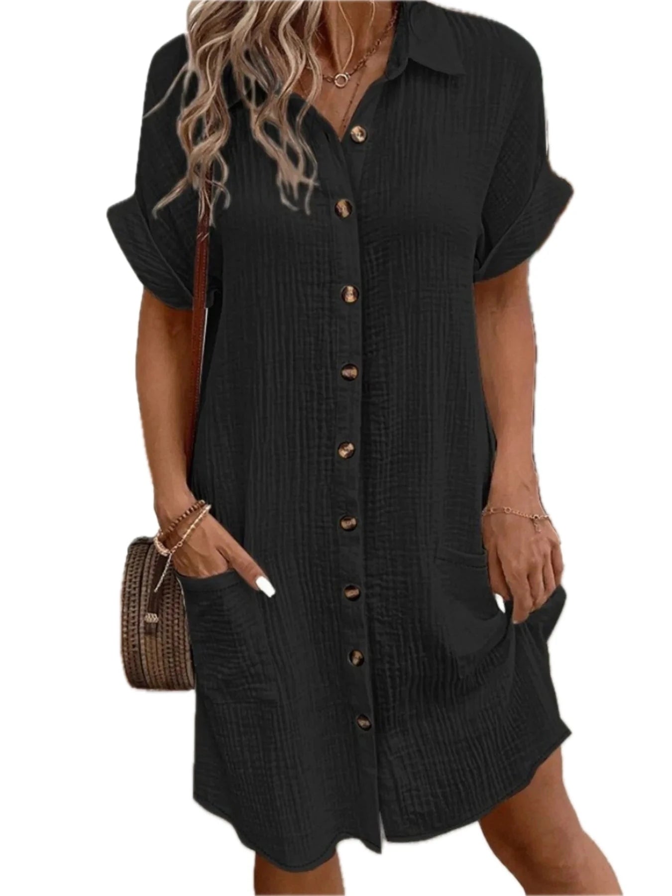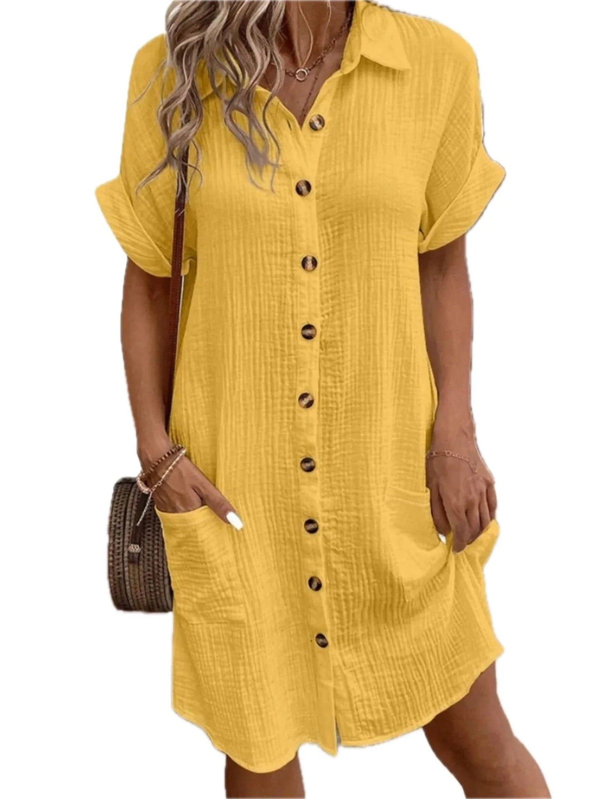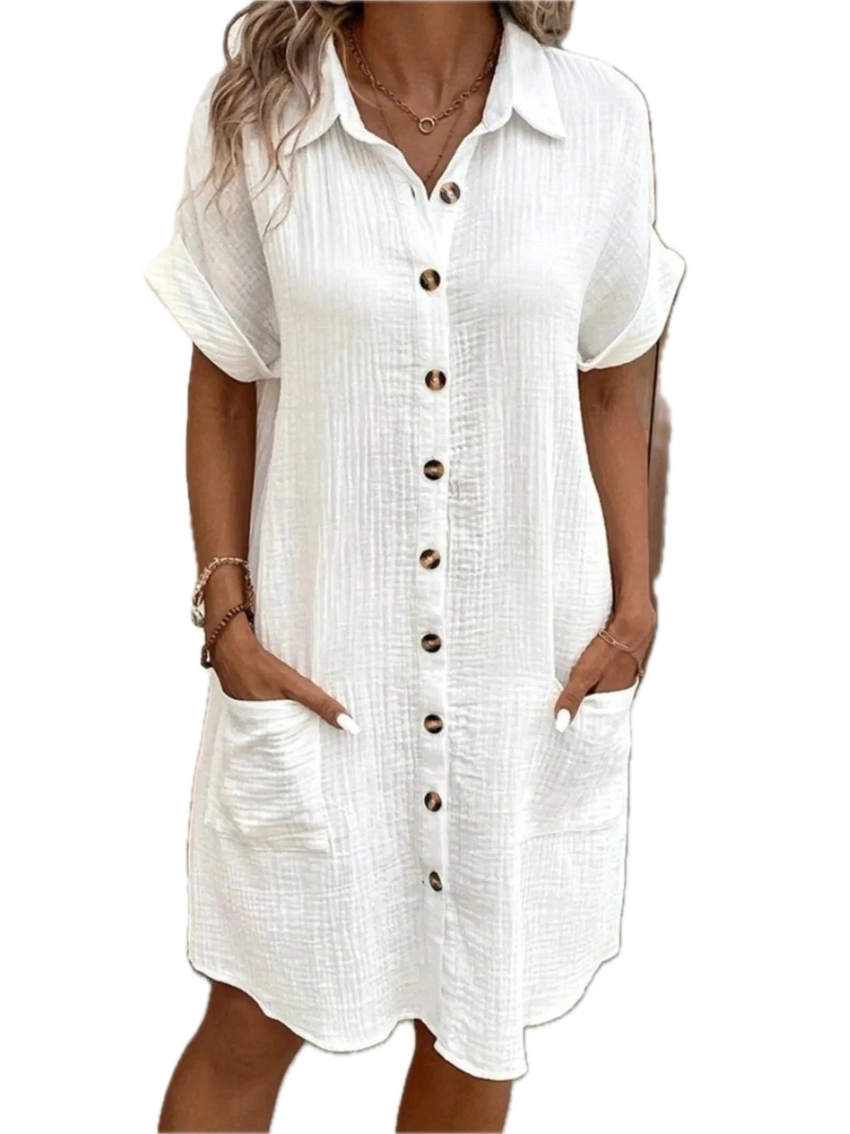 Women's Casual Button Down Shirt Dress with Pockets 100% Polyester Lightweight Tunic Style Everyday Wear for Spring