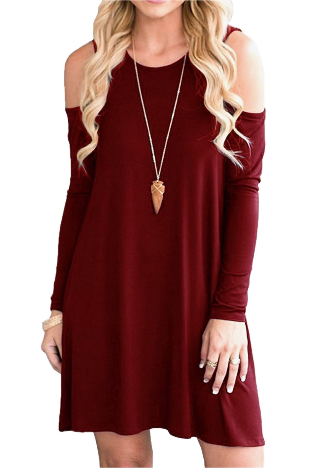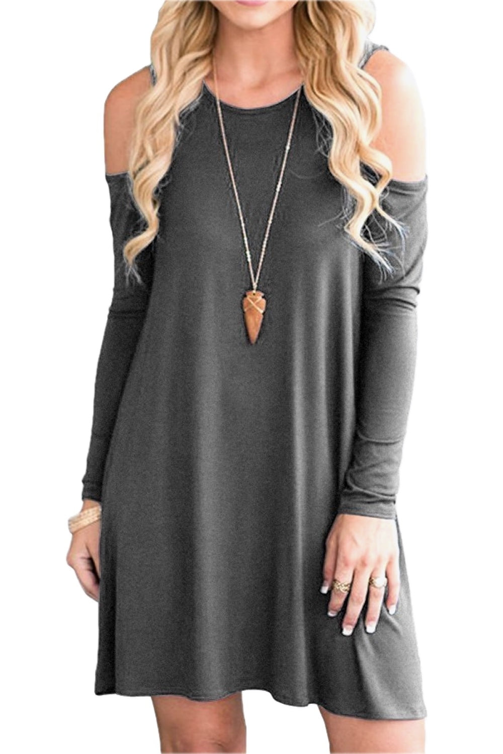 Women's Cold Shoulder Long Sleeve Round Neck Dress Mini Length with 95% Rayon and 5% Spandex Comfortable Stretch