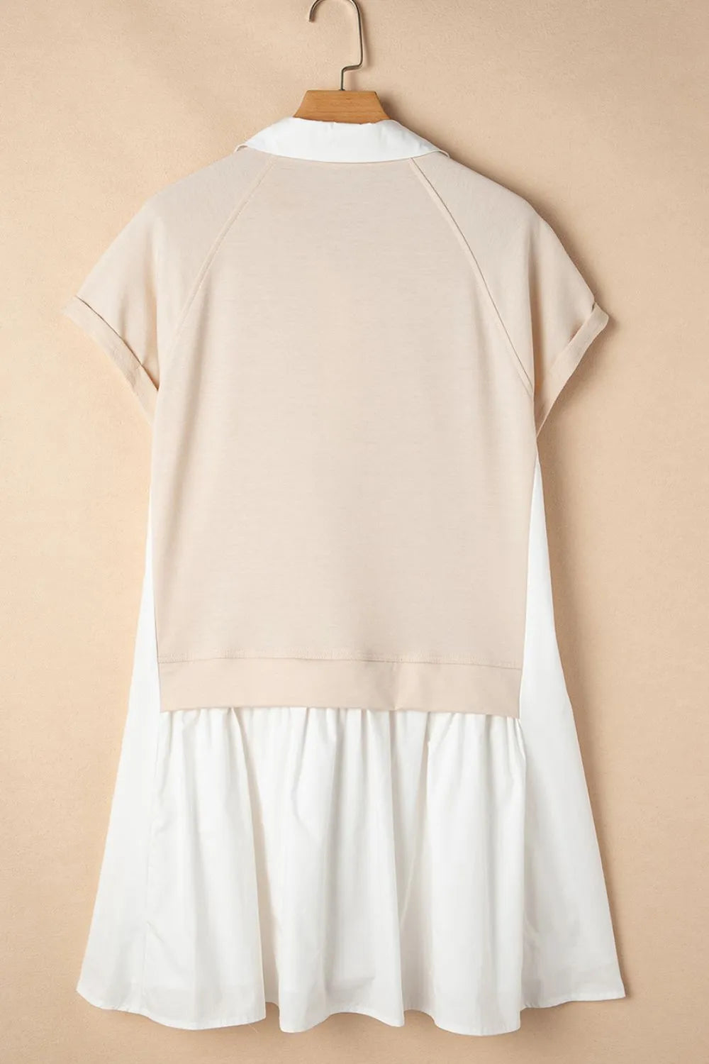 Women's Collared Neck Buttoned Patchwork Short Sleeve Mini Dress for Daily Wear 85% Polyester 10% Cotton 5% Elastane