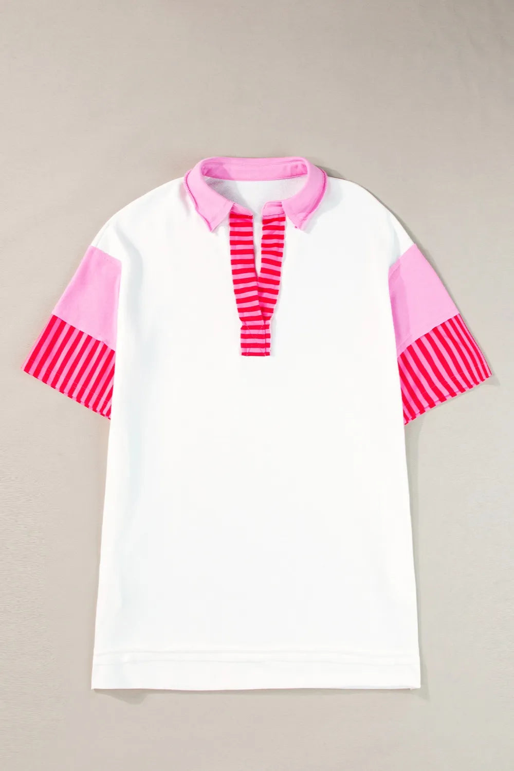 Women's Color Block Johnny Collar Half Sleeve Dress 65% polyester and 35% cotton comfortable everyday wear chic
