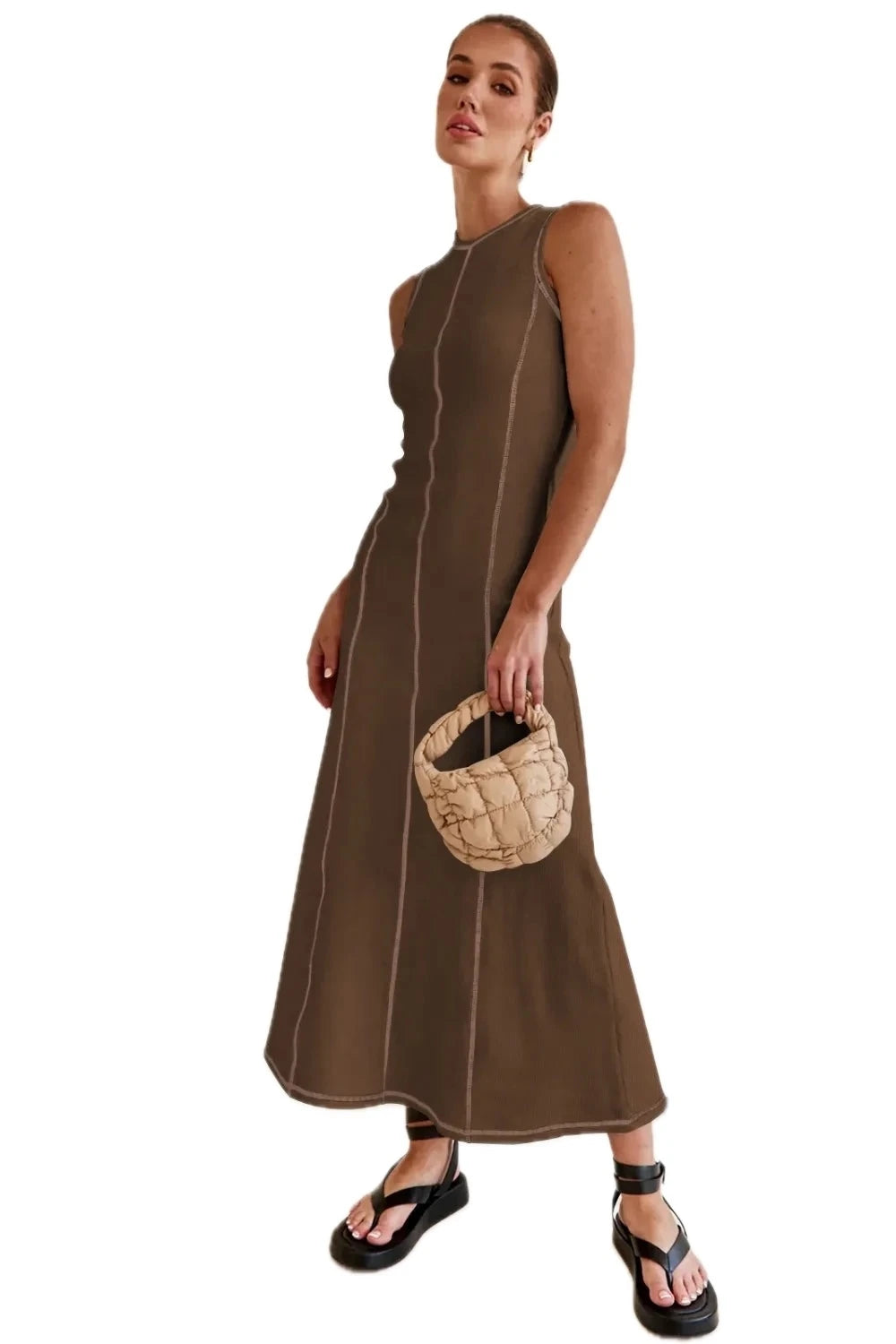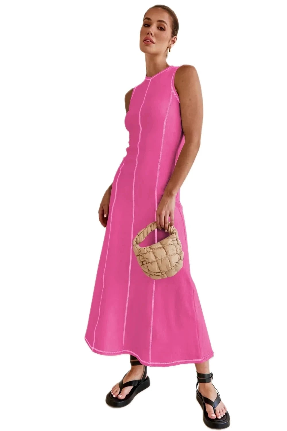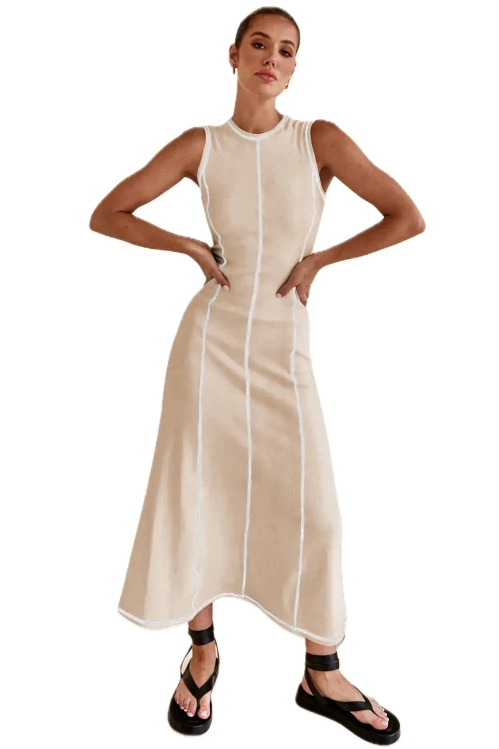 Women's Contrast Stitching Maxi Tank Dress with Sheer Look and Stretch 92% viscose 8% elastane for everyday wear