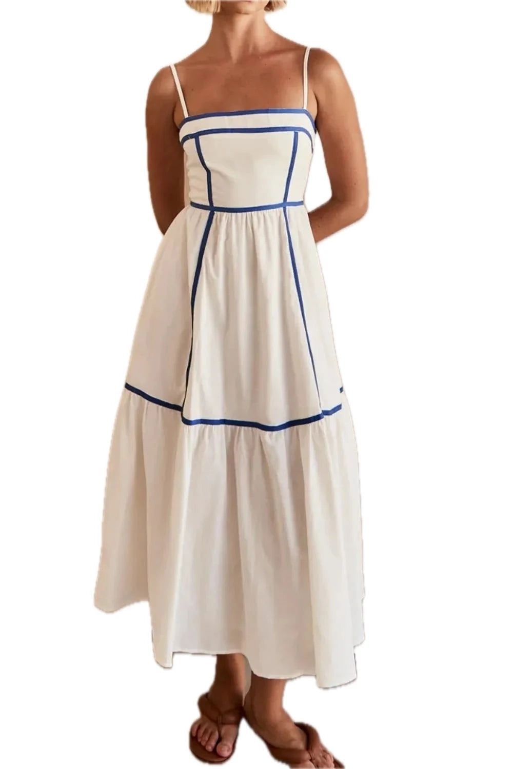 Women's Contrast Trim Square Neck Midi Cami Dress 100% Polyester Lightweight Silhouette Perfect for Day to Night Out
