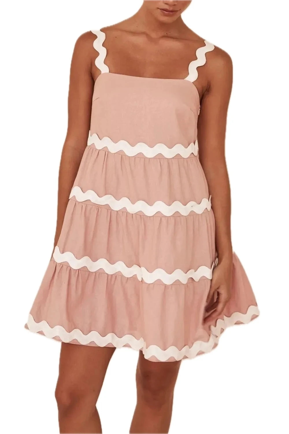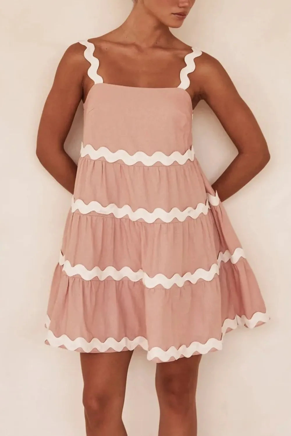 Women's Contrast Trim Square Neck Tiered Dress with one hundred percent polyester fabric for day to night wear