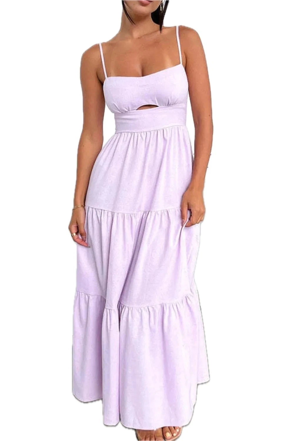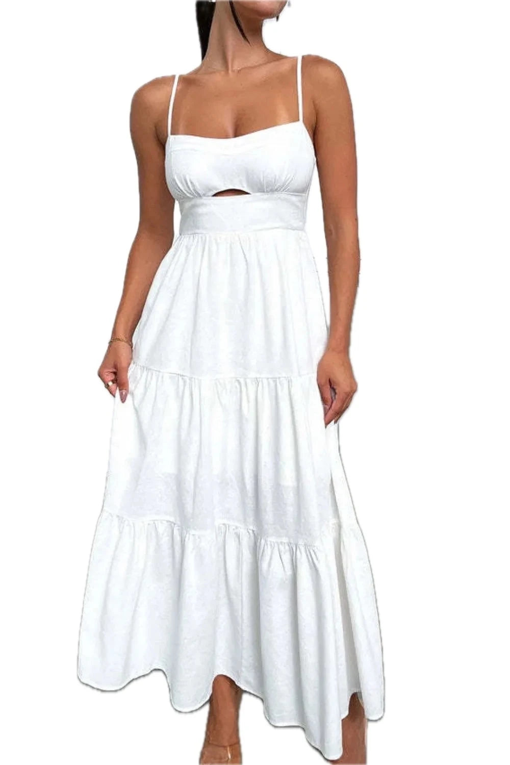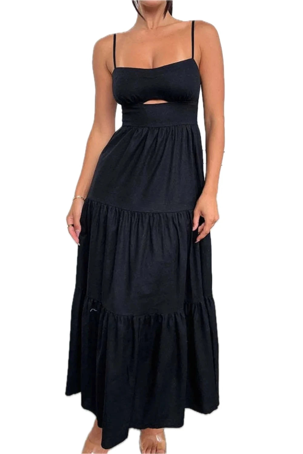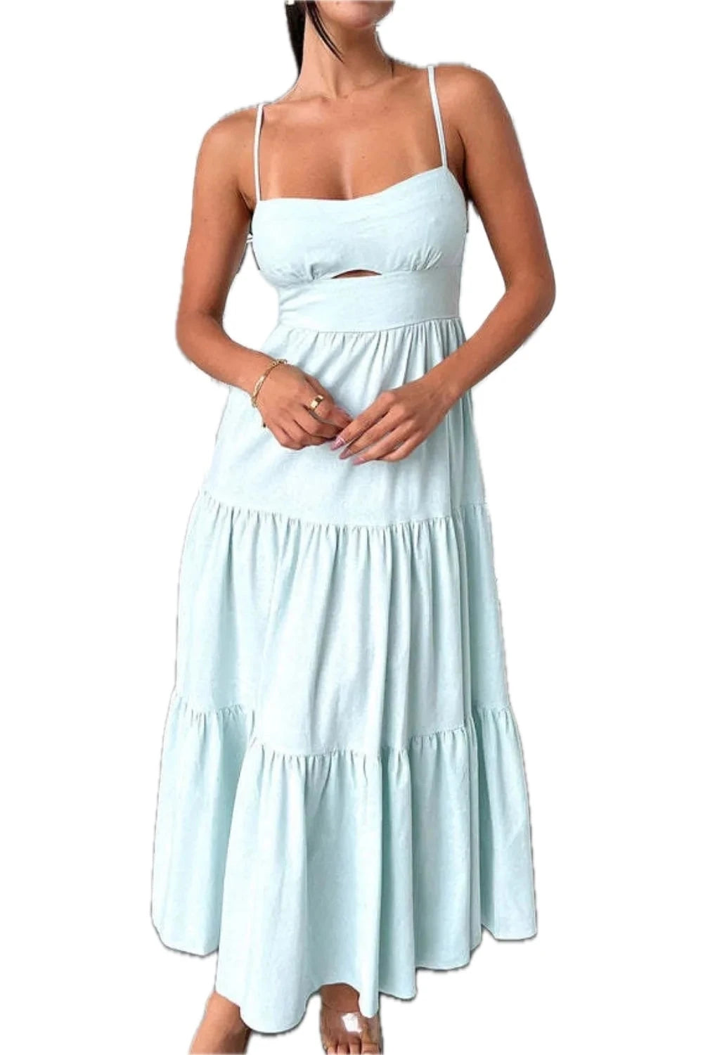 Women's Cut Out Tiered Dress with Spaghetti Straps 100% Polyester Lightweight Summer Party Dress Casual Everyday Wear