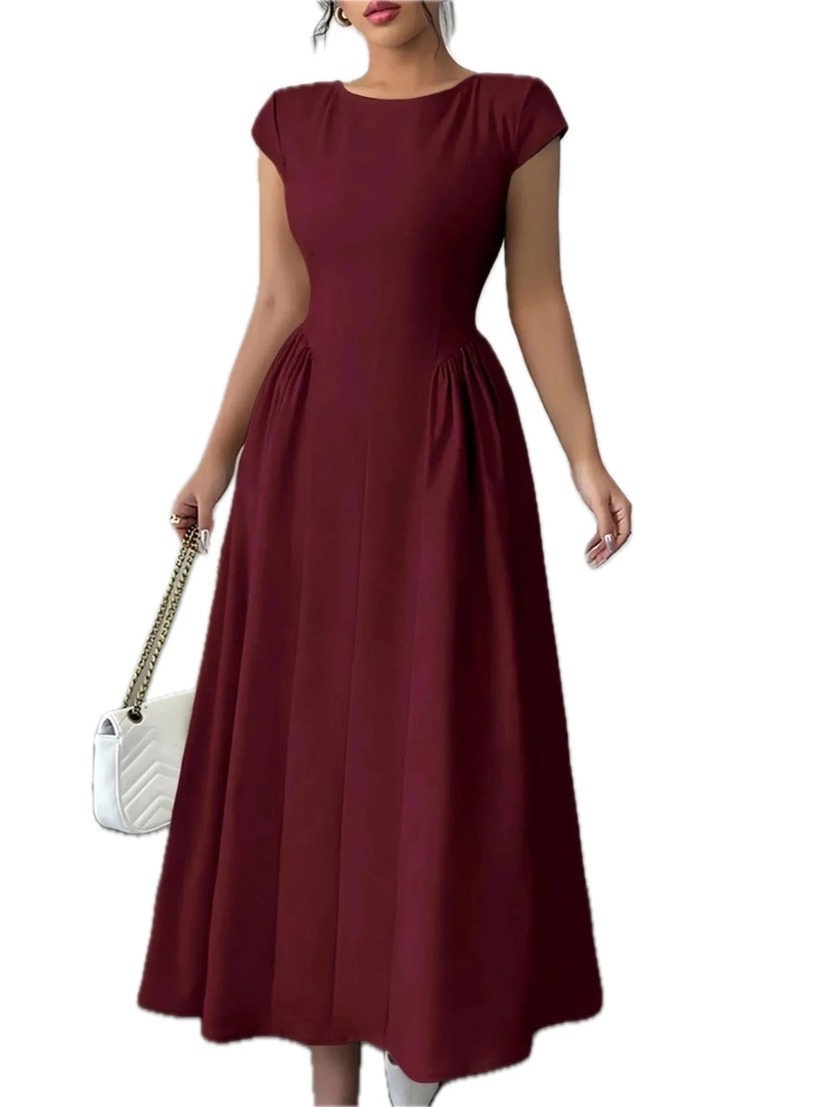 Women's Cutout Tie Back Cap Sleeve Dress with Bow Detail 100% Polyester Lightweight Evening Party Outfit for Summer