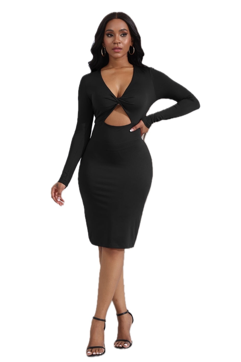 Women's Cutout Twisted Long Sleeve Dress Sheer and Opaque Panels 80% polyester 20% spandex Stretch Fabric chic look