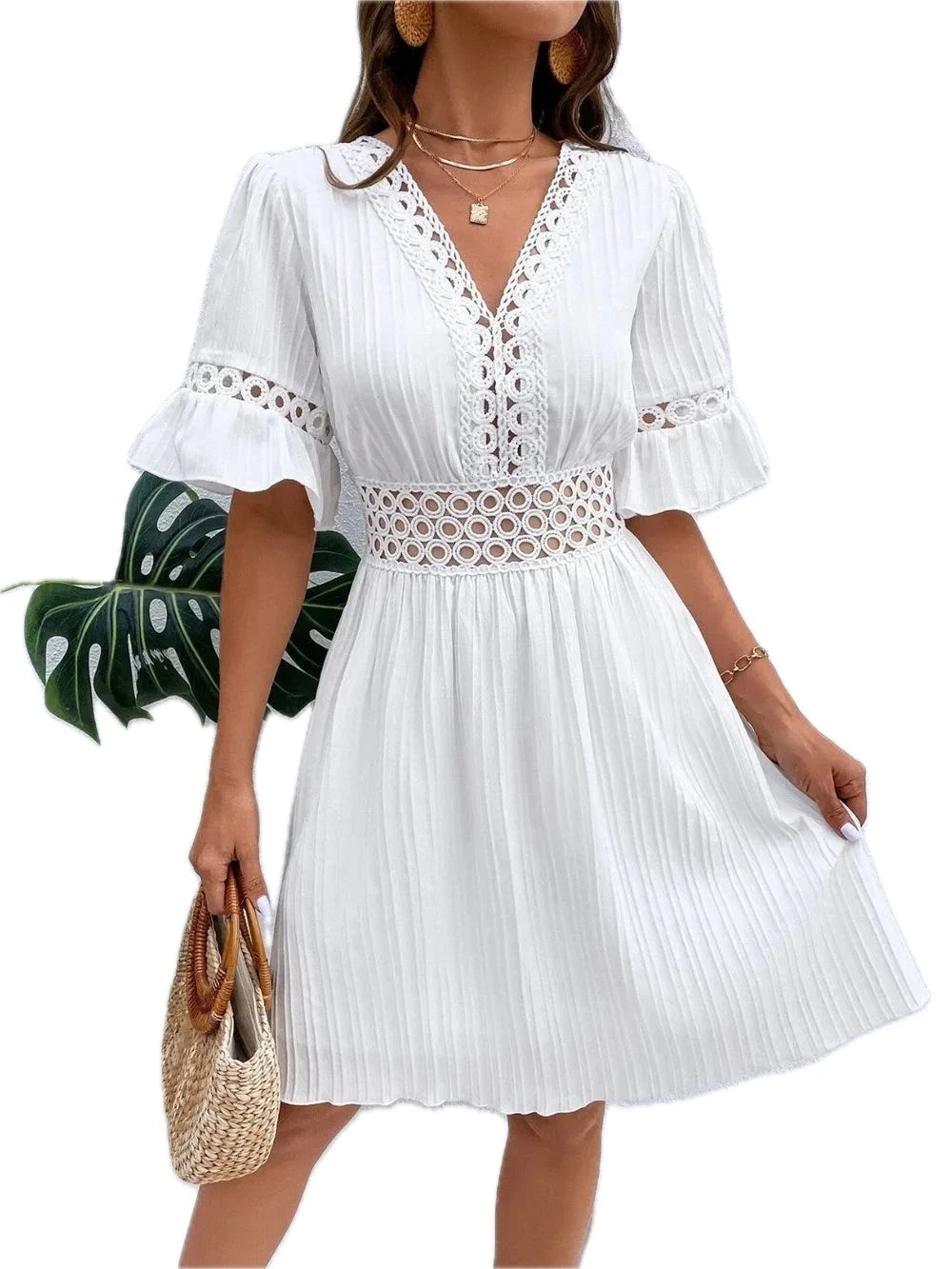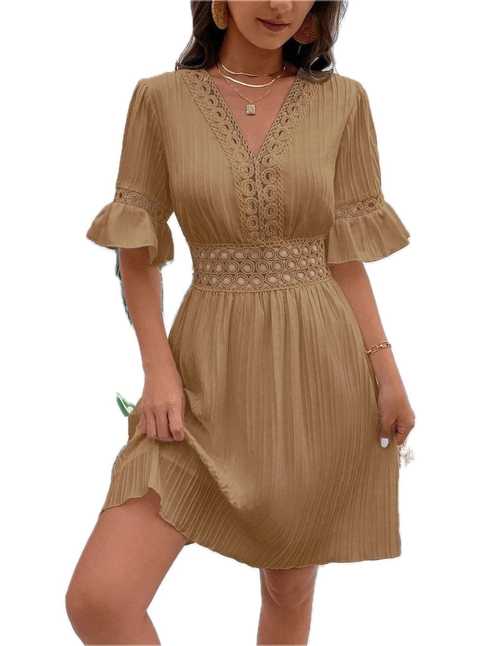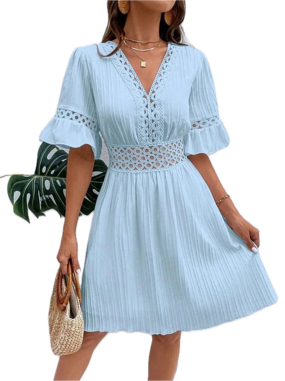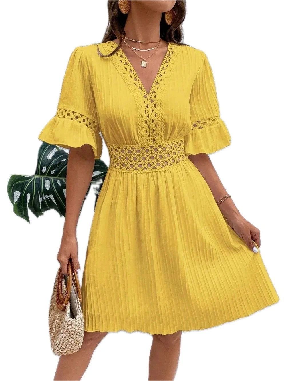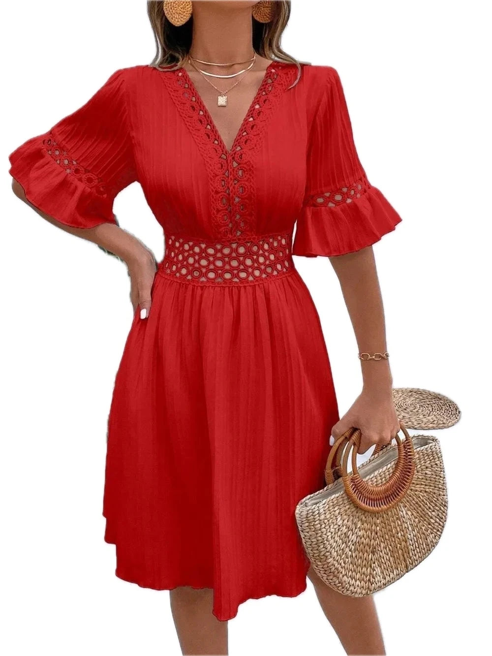 Women's Cutout V Neck Flounce Sleeve Mini Dress 100% Polyester Lined Elegant Party Ready Day to Night Everyday Chic