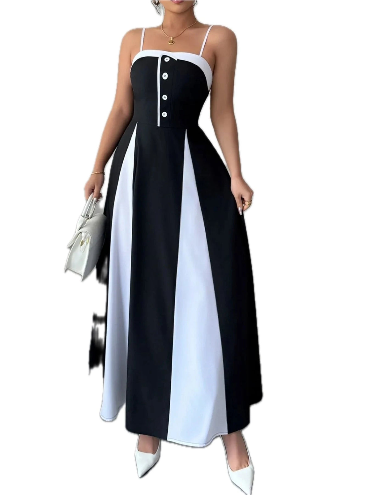 Women's Maxi Cami Dress with Decorative Button Contrast and Stretch Fabric 100% Polyester for Everyday Wear Collection