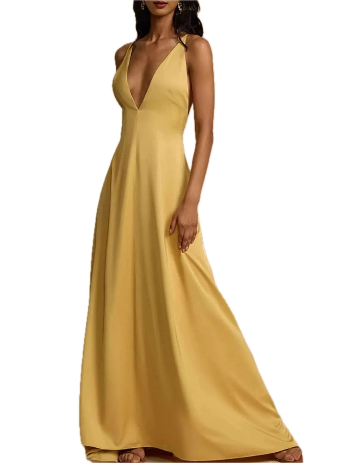 Women's Deep V Neck Maxi Dress Backless Crisscross Stretch Silhouette for Evening Events with 100% Polyester Fabric
