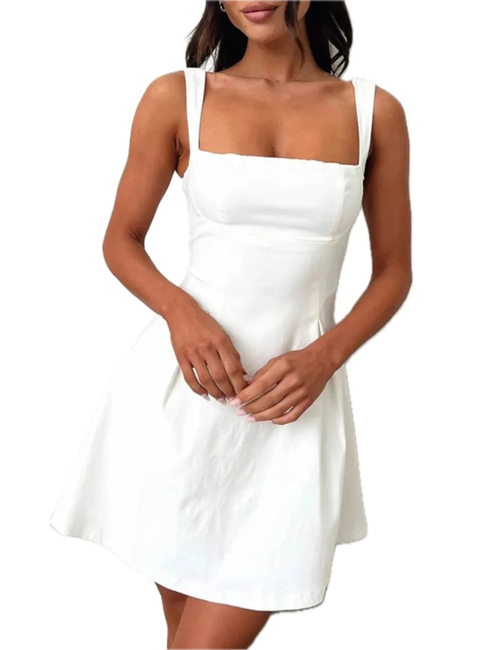 Women's Bow Back Square Neck Mini Dress 94% polyester 6% elastane fabric with opaque stretch and sheer bow detail