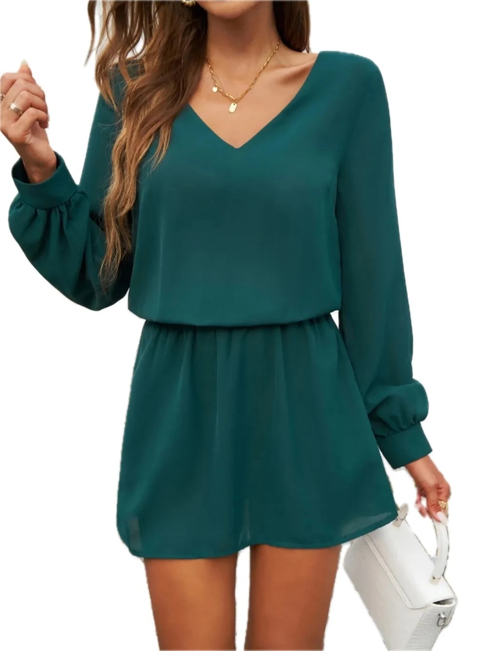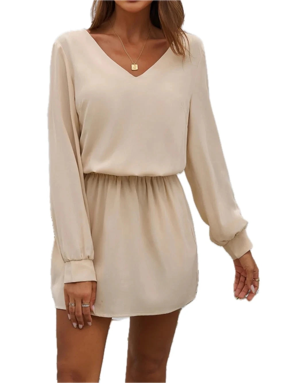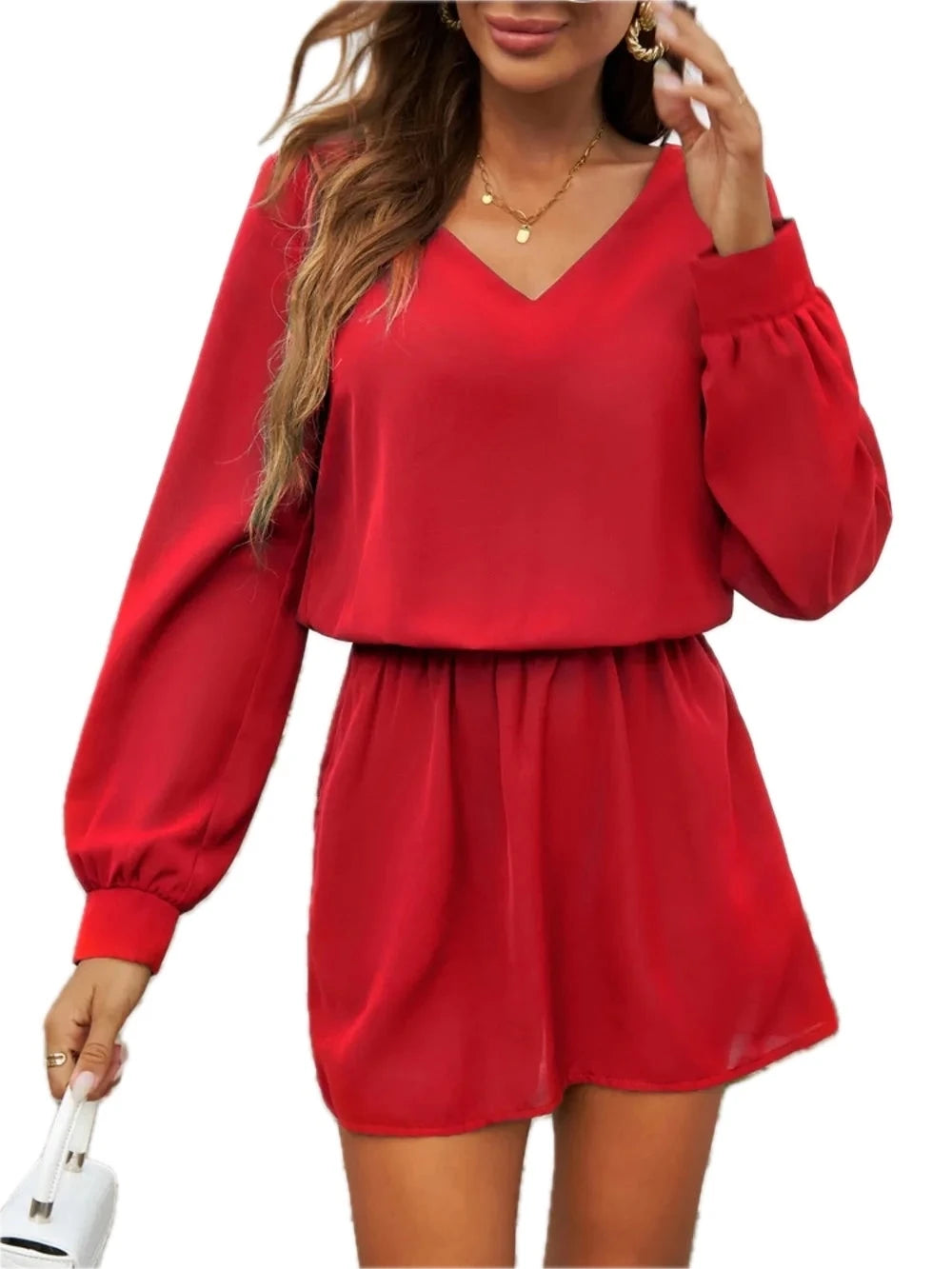 Women's V Neck Cutout Detail Long Sleeve Mini Dress for Evening Wear with Subtle Sheen and 100% Polyester Fabric