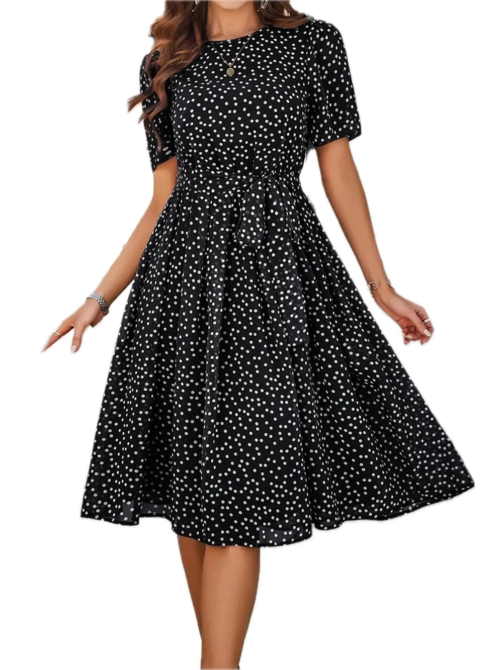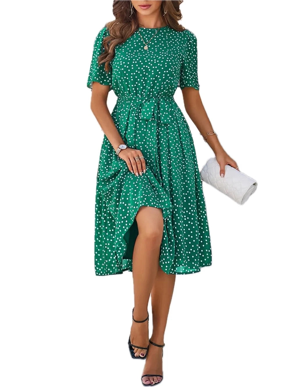 Women's Printed Round Neck Short Sleeve Dress 100% Polyester Fabric Lightweight Comfortable Everyday Versatile Wear