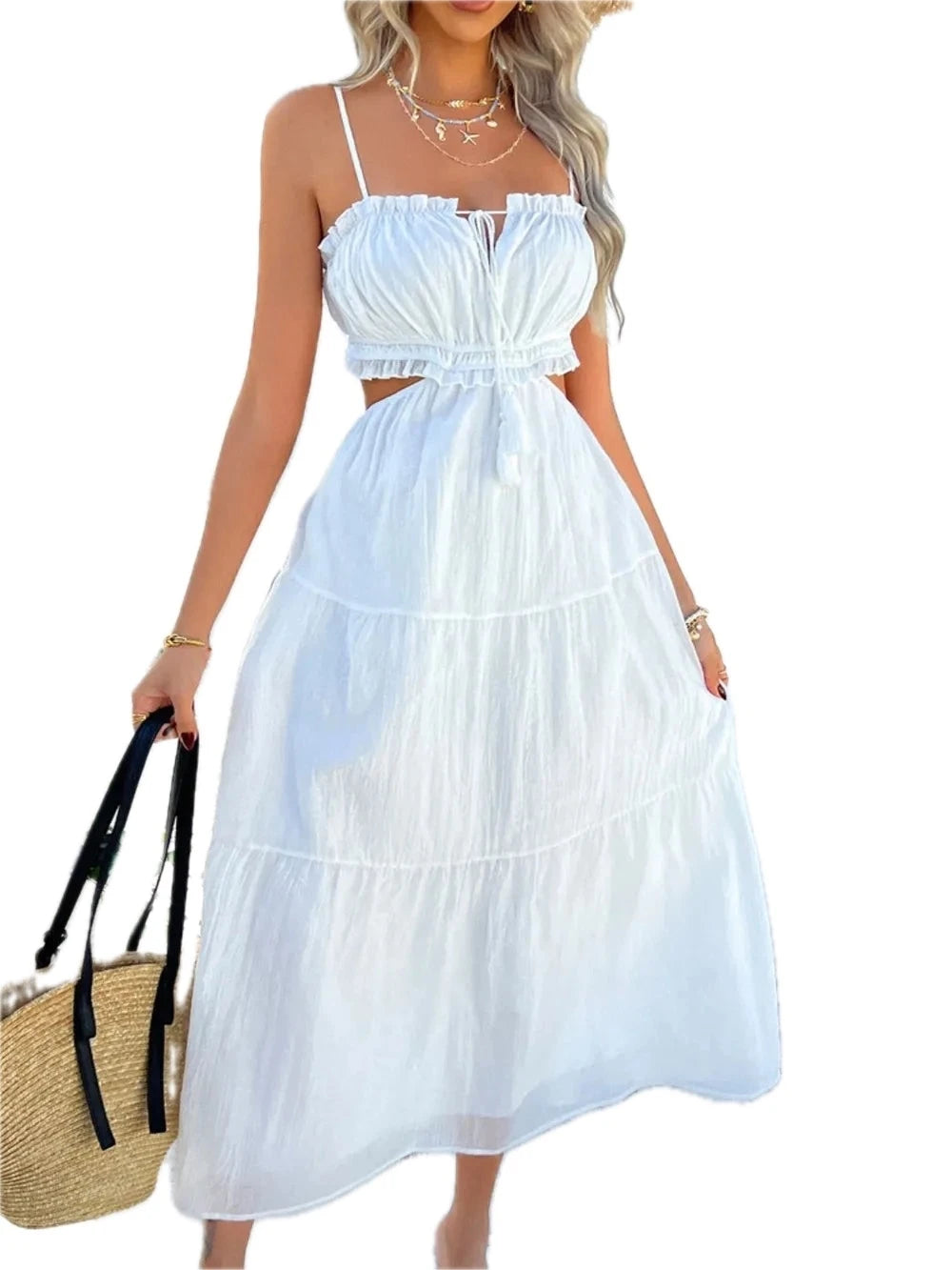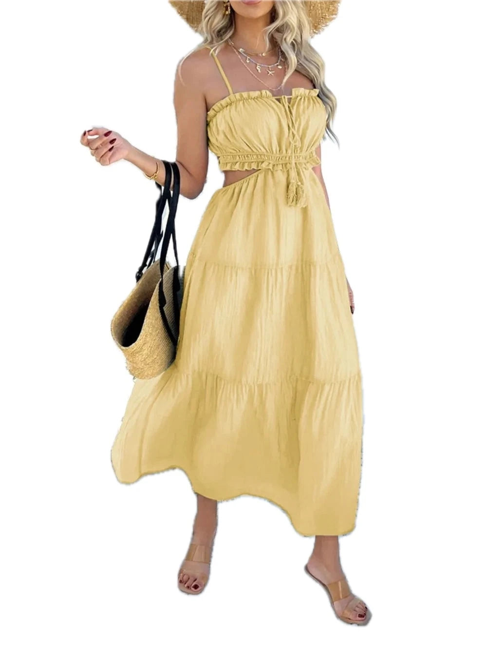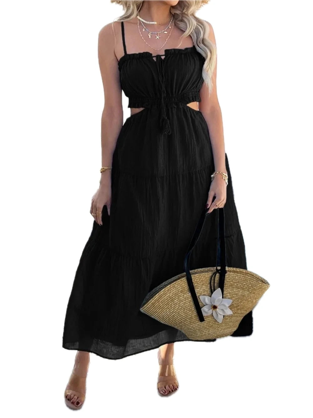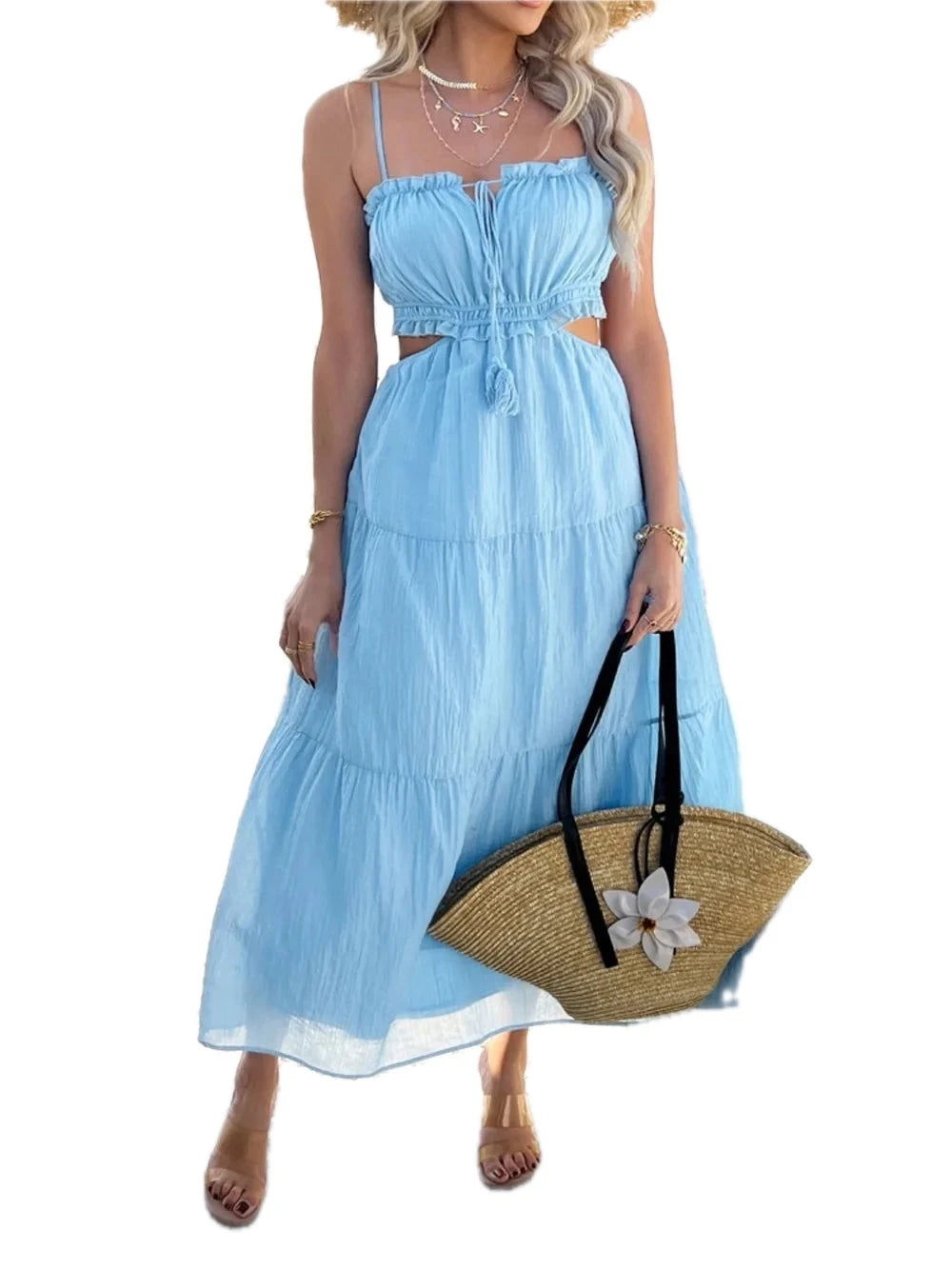 Women's Tie Back Cami Midi Dress with Cutout and Frill Lined Opaque 70% Lyocell 30% Polyamide Drapey Silhouette