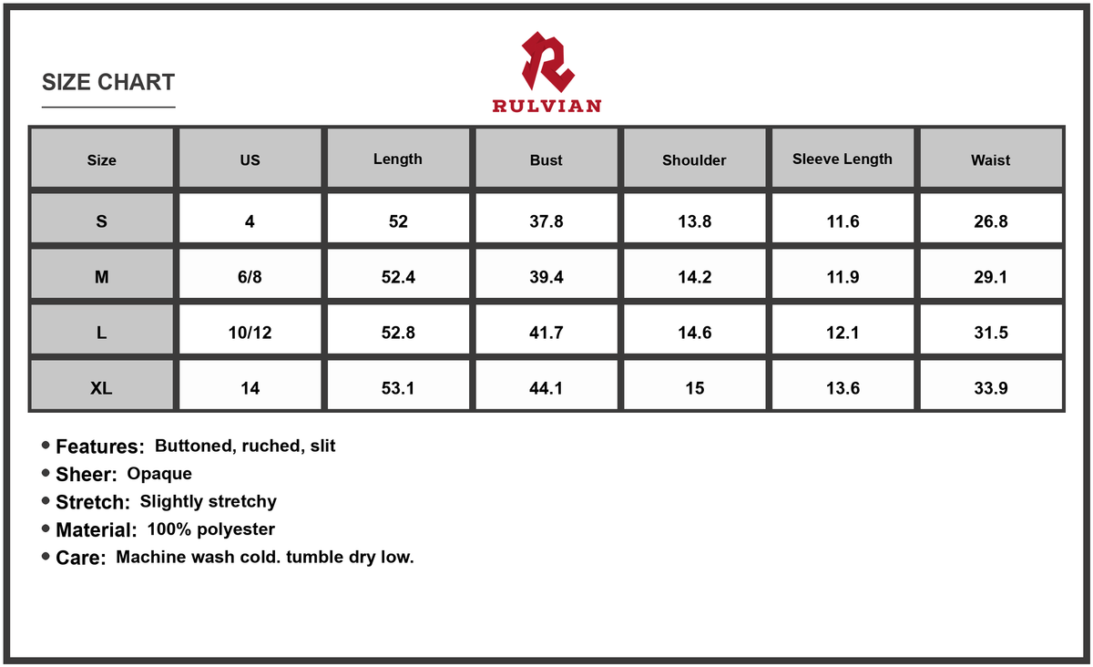 Size | US | Length | Bust | Shoulder | Sleeve Length | Waist |