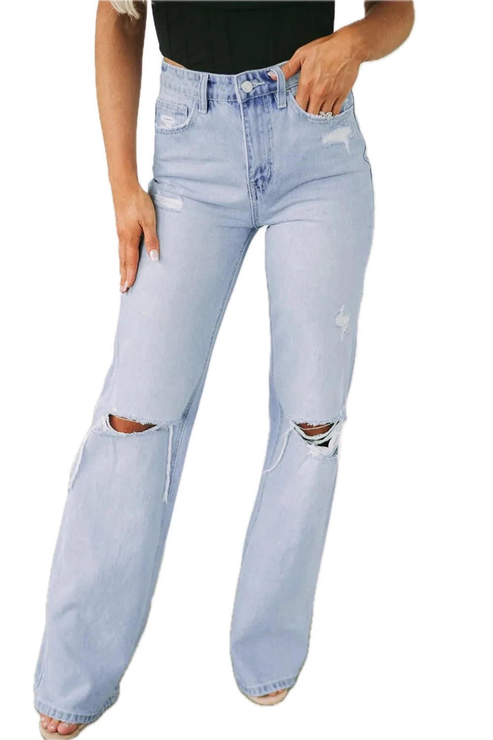 Women High Waist Distressed Slim Fit Jeans with Slight Stretch Durable Denim for Casual Everyday Fashionable Look