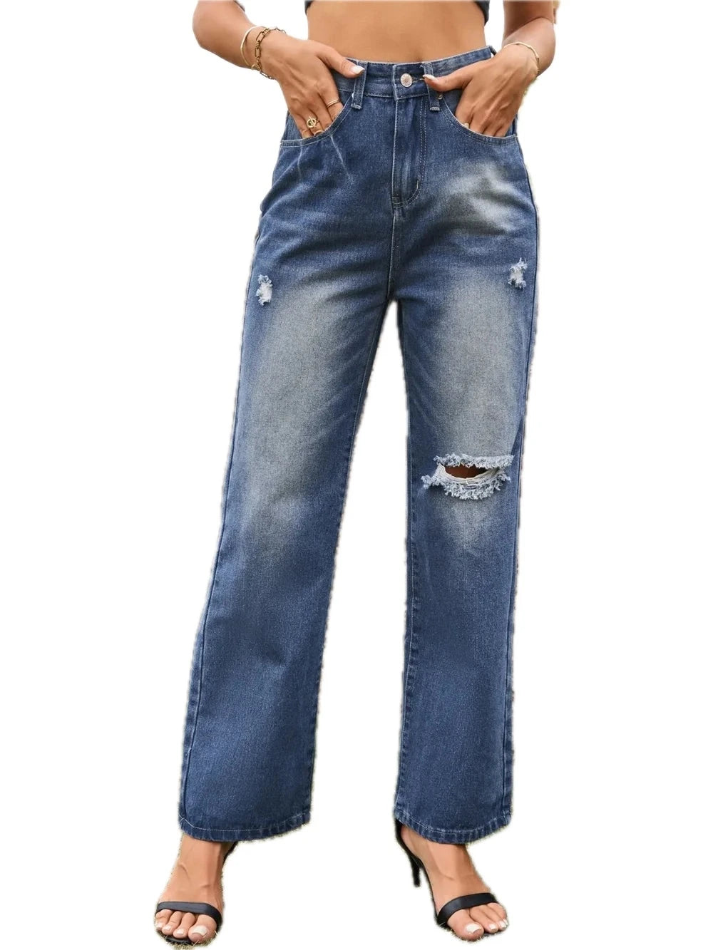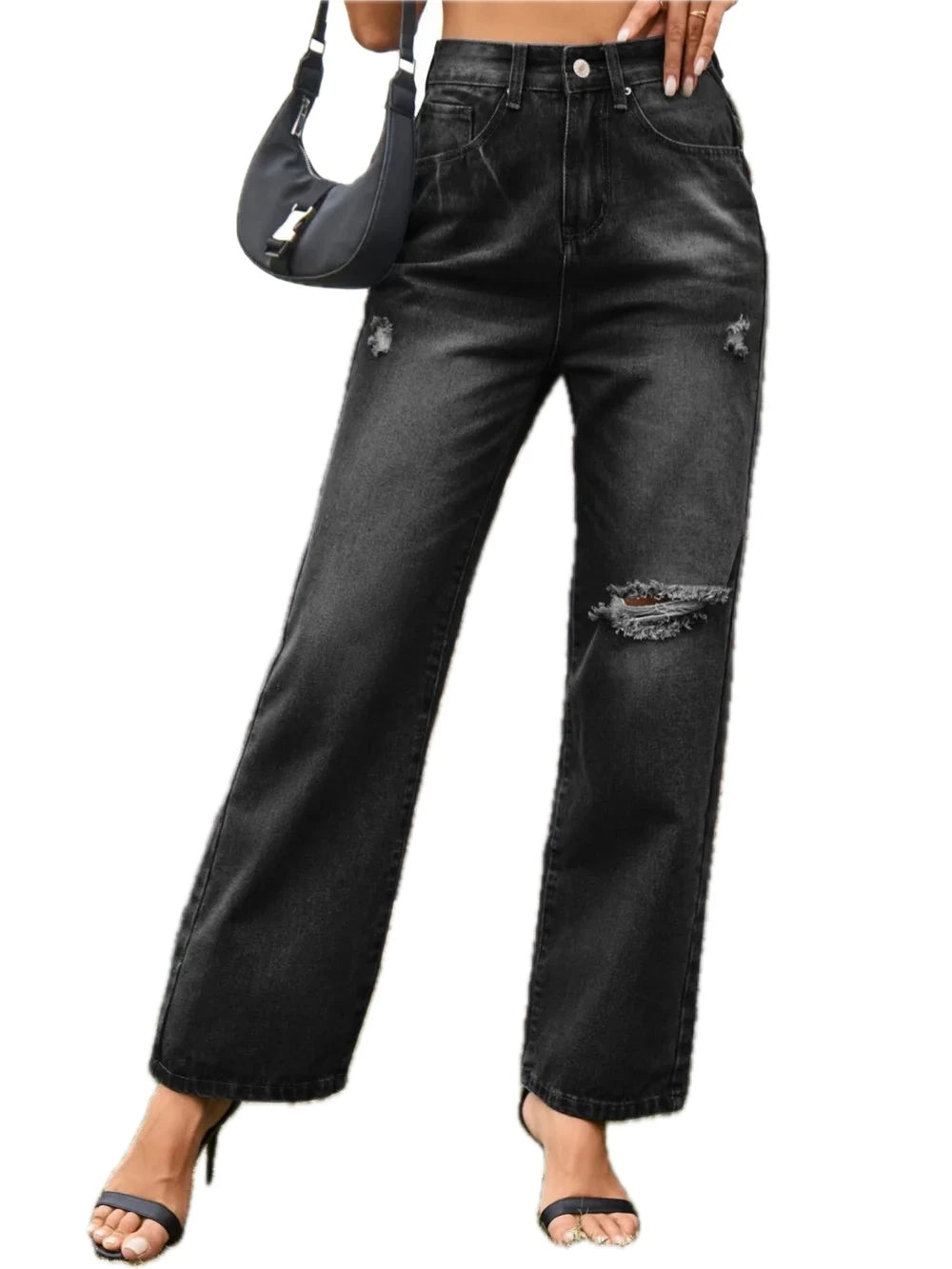 Women Distressed Stretch Jeans with Front Pockets Soft Stretch Fabric Button Fly Casual Versatile Denim Pants S to 2XL