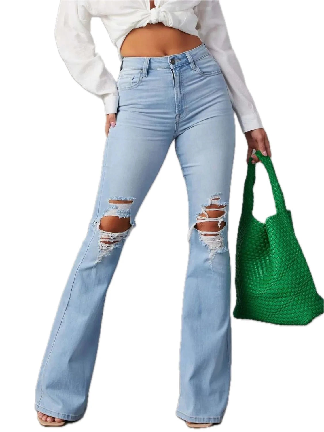 Womens Distressed Jeans with High Stretch Buttoned Pocketed Slim Fit Casual Everyday Trendy Durable Versatile Denim