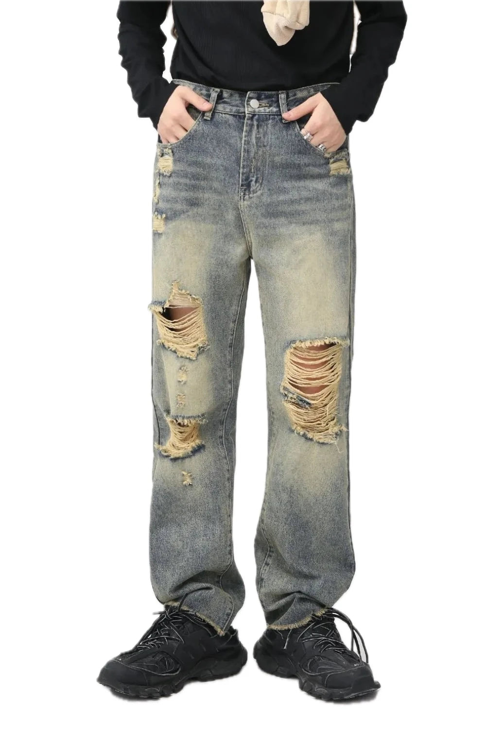 Womens distressed mid rise jeans with pockets durable denim suitable for casual everyday fashion and comfortable wear