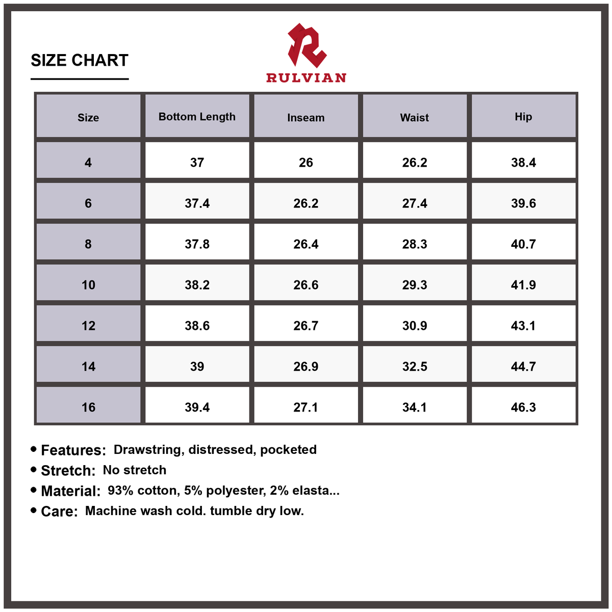 - Features: Drawstring, Distressed, Pocketed