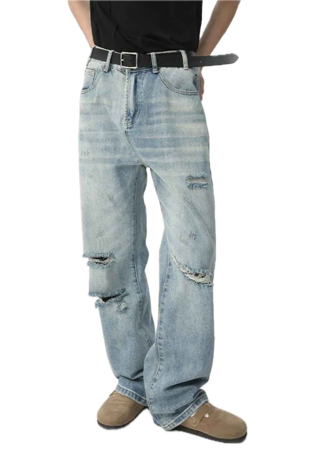 Women Distressed Wide Leg Jeans Denim Casual Loose Fit for Everyday Wear Ninety Percent Cotton Ten Percent Viscose