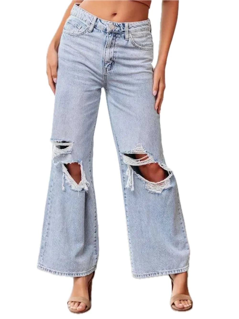 Womens Distressed Wide Leg Jeans with Pockets High Waist Casual Trendy Denim Pants for Everyday Wear Nonstretch