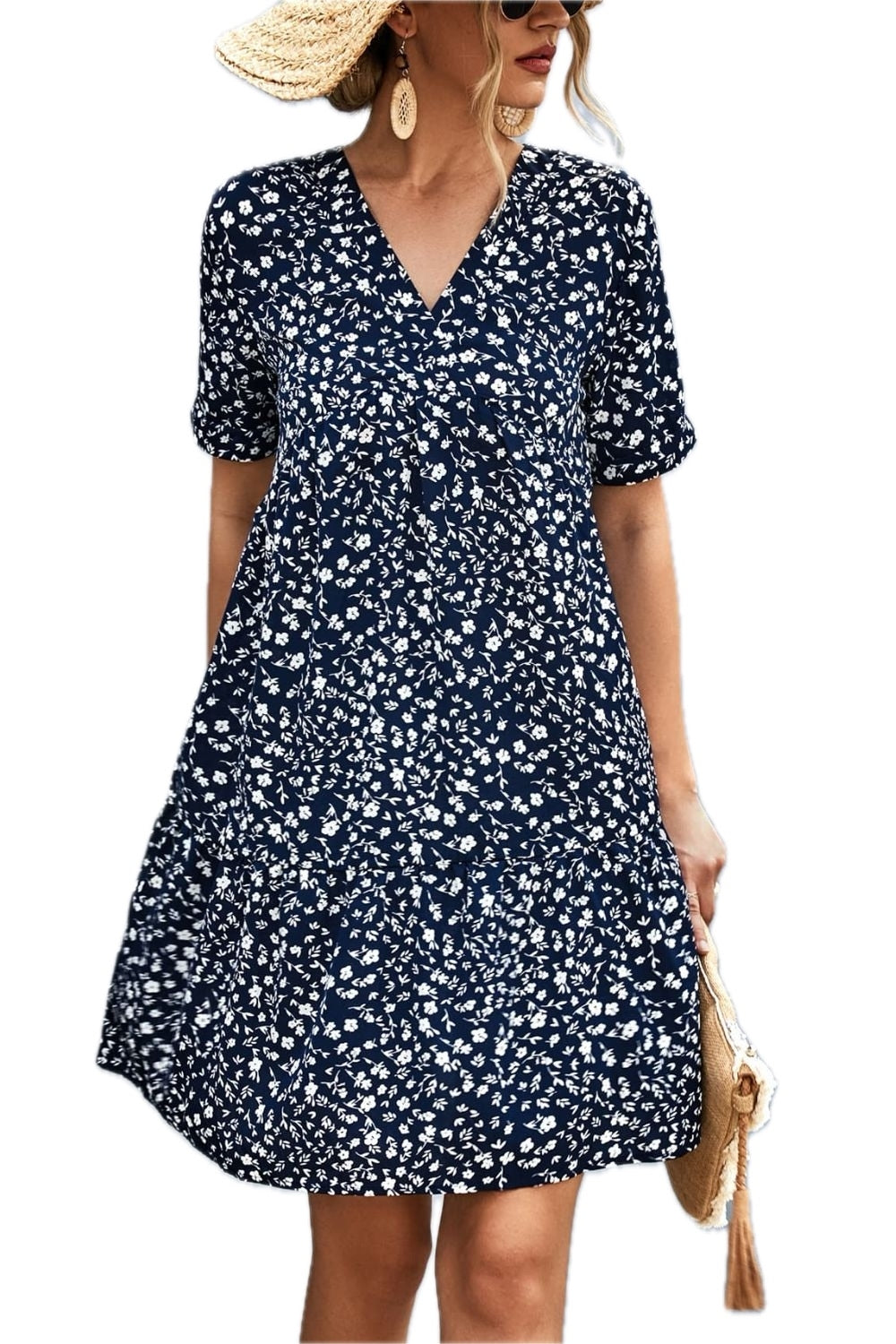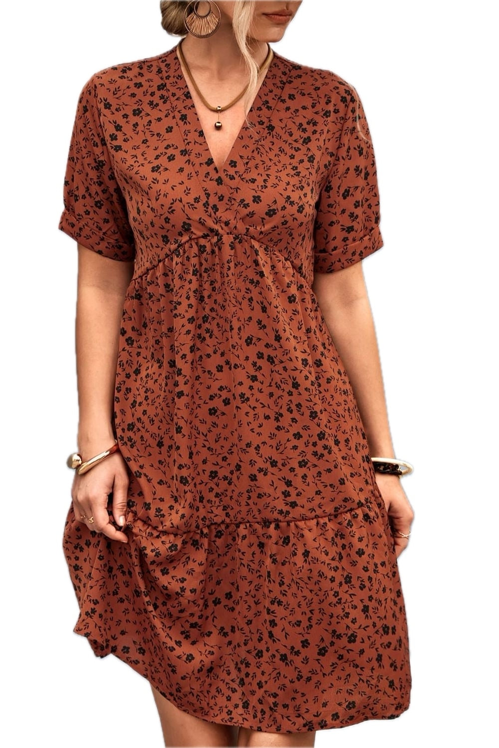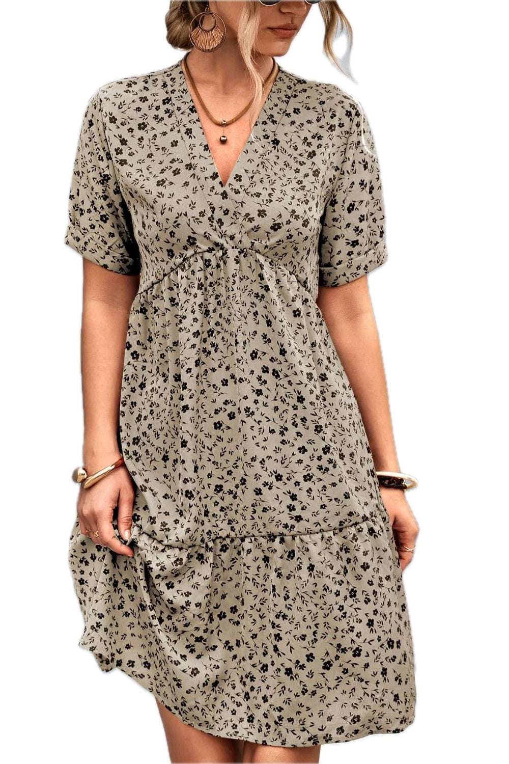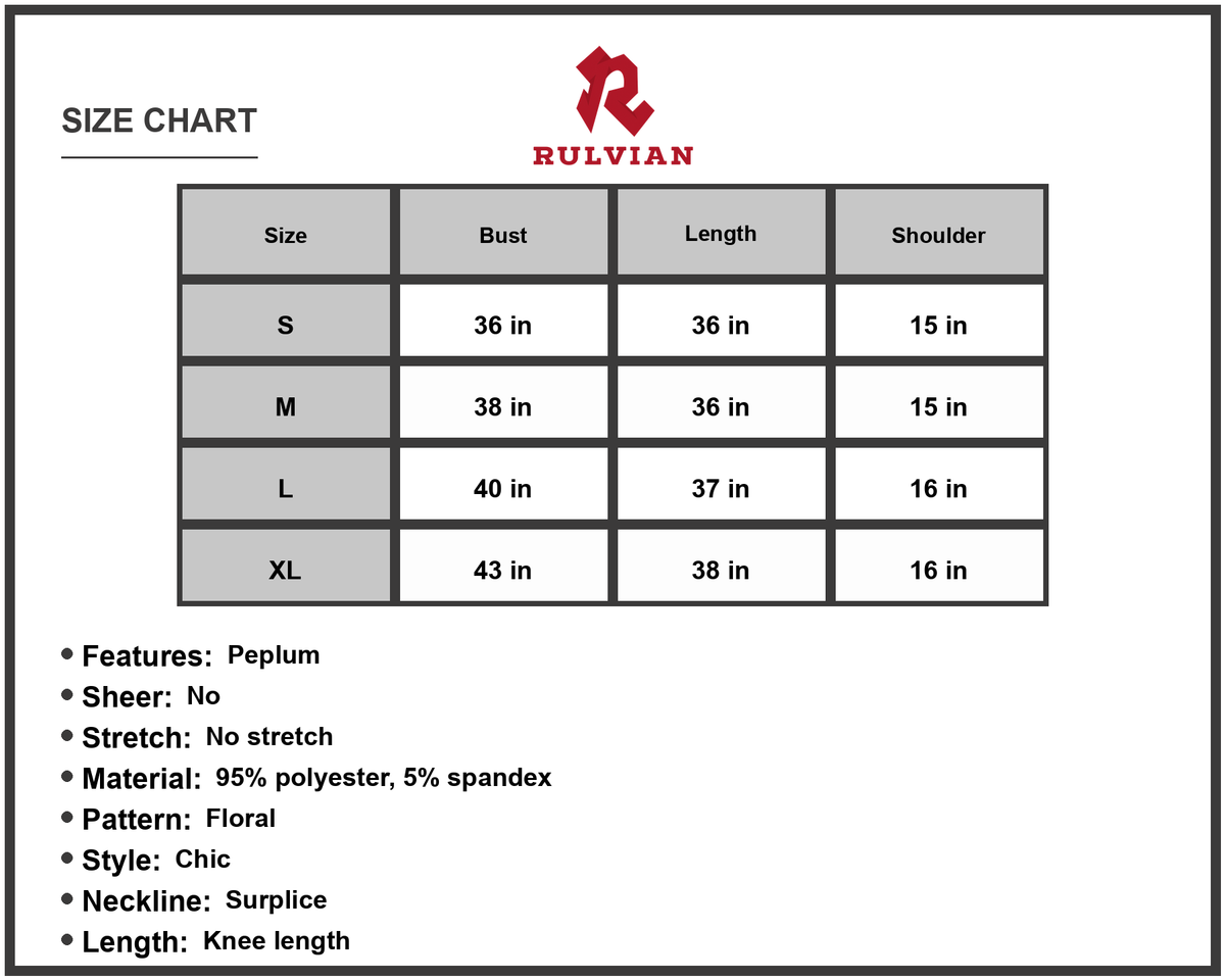 Women's Ditsy Floral Empire Waist Plunge Short Sleeve Dress Peplum Neckline Surplice Style 95% polyester 5% spandex