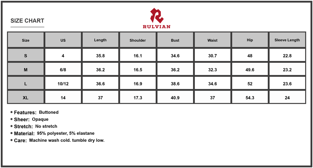 Size | US | Length | Shoulder | Bust | Waist | Hip | Sleeve Length |