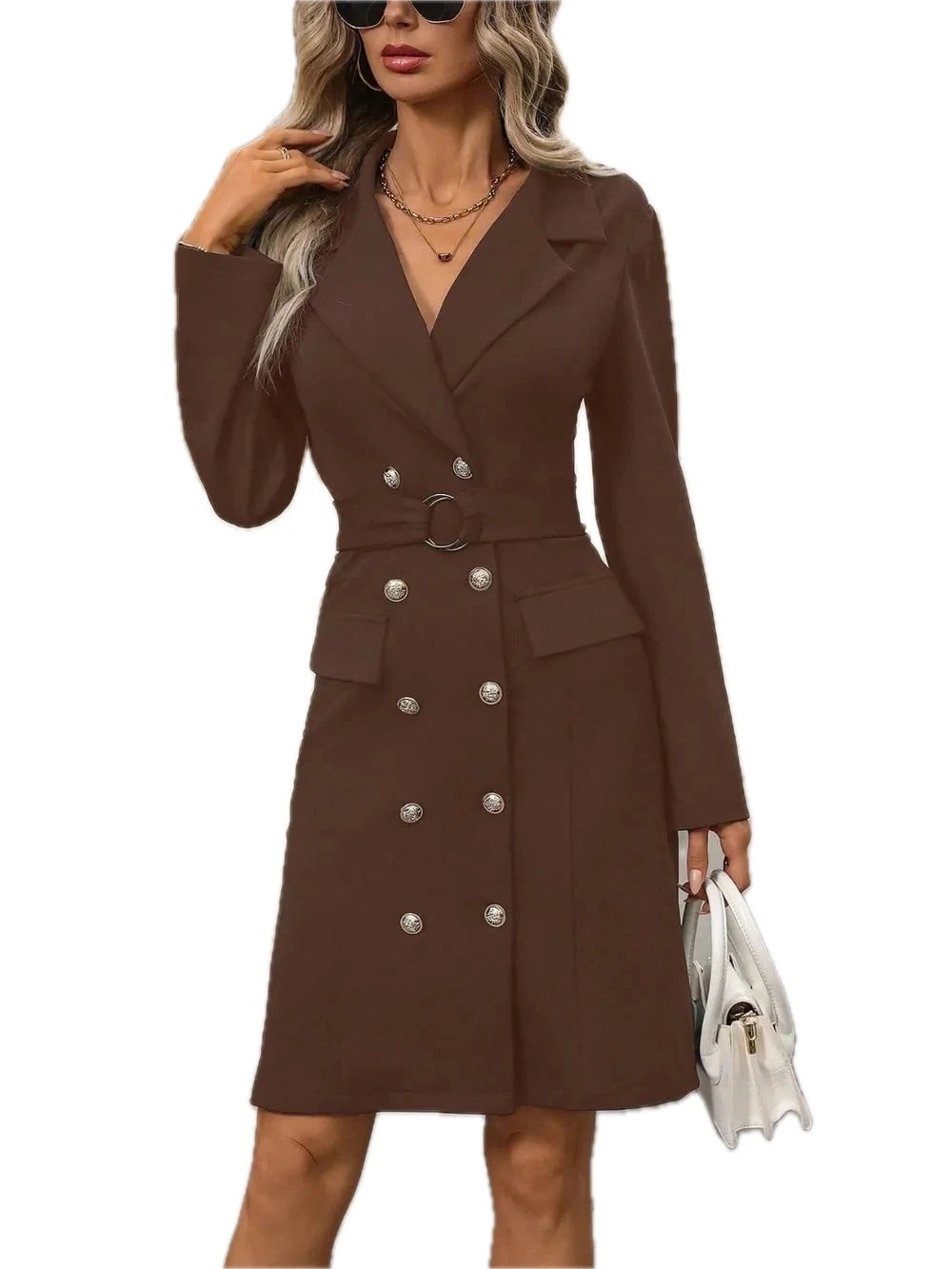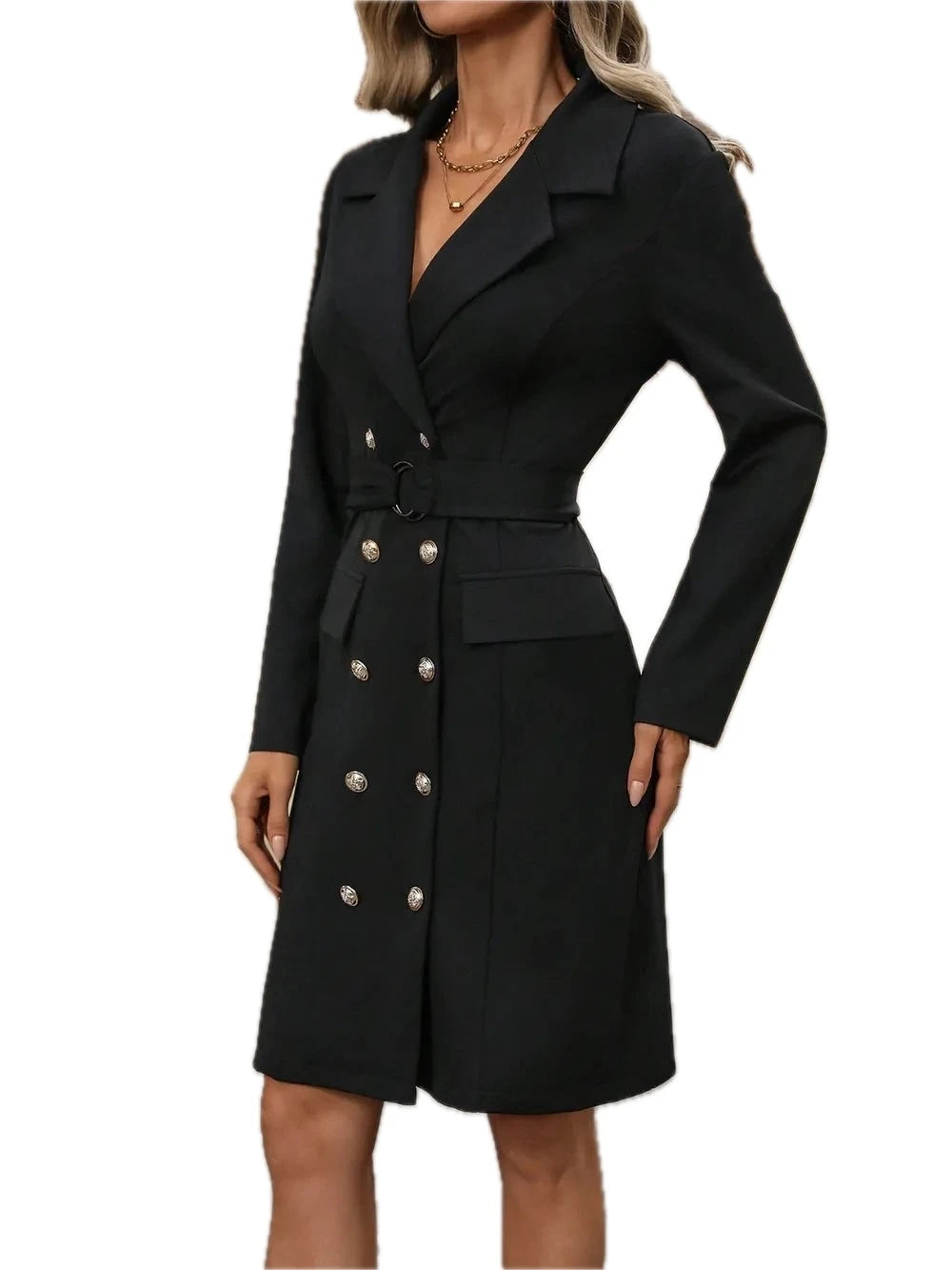 Women's Double Breasted Lapel Collar Dress with Sheer Buttoned Style Ninety five% polyester and five% elastane fabric