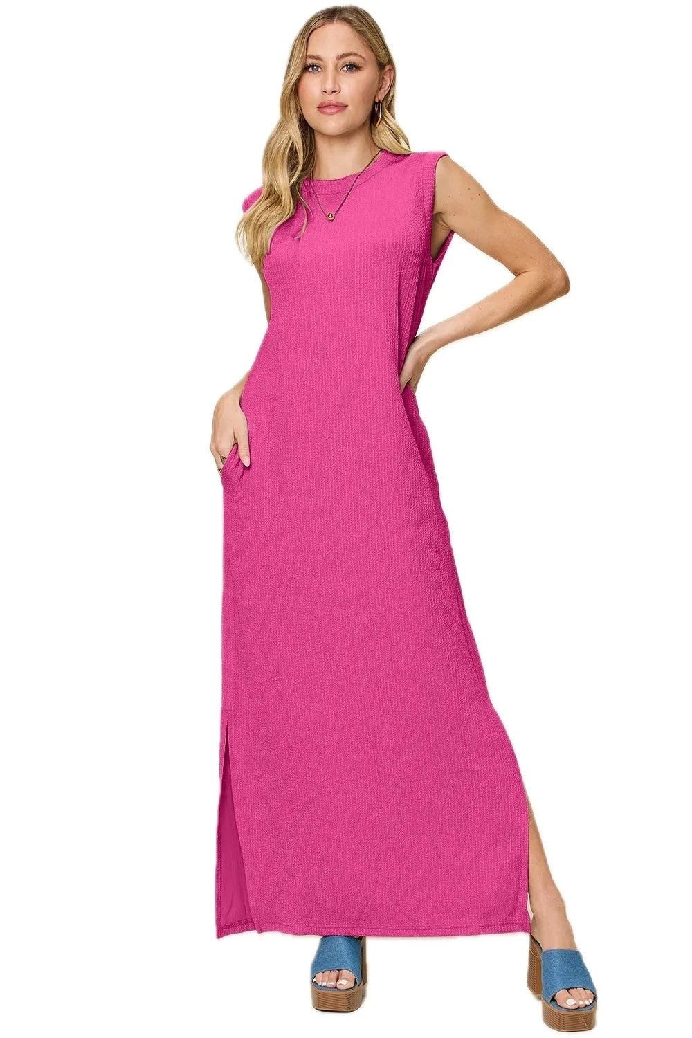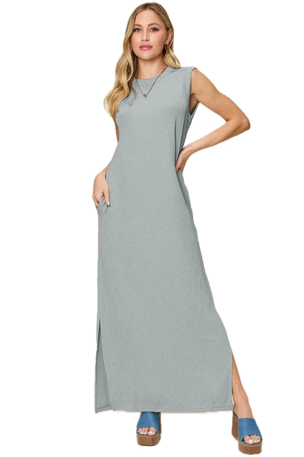 Women's Sleeveless Maxi Dress with Mock Neck Texture and Elegant Full Length Silhouette 94% polyester 6% spandex