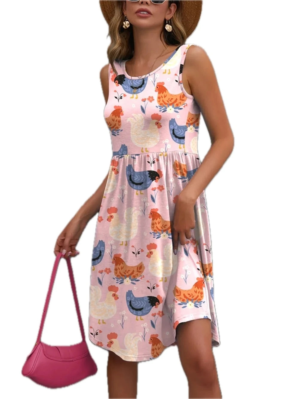 Women's Printed Round Neck Sleeveless Dress with Slight Stretch for Everyday Casual Comfort 95% Polyester 5% Spandex