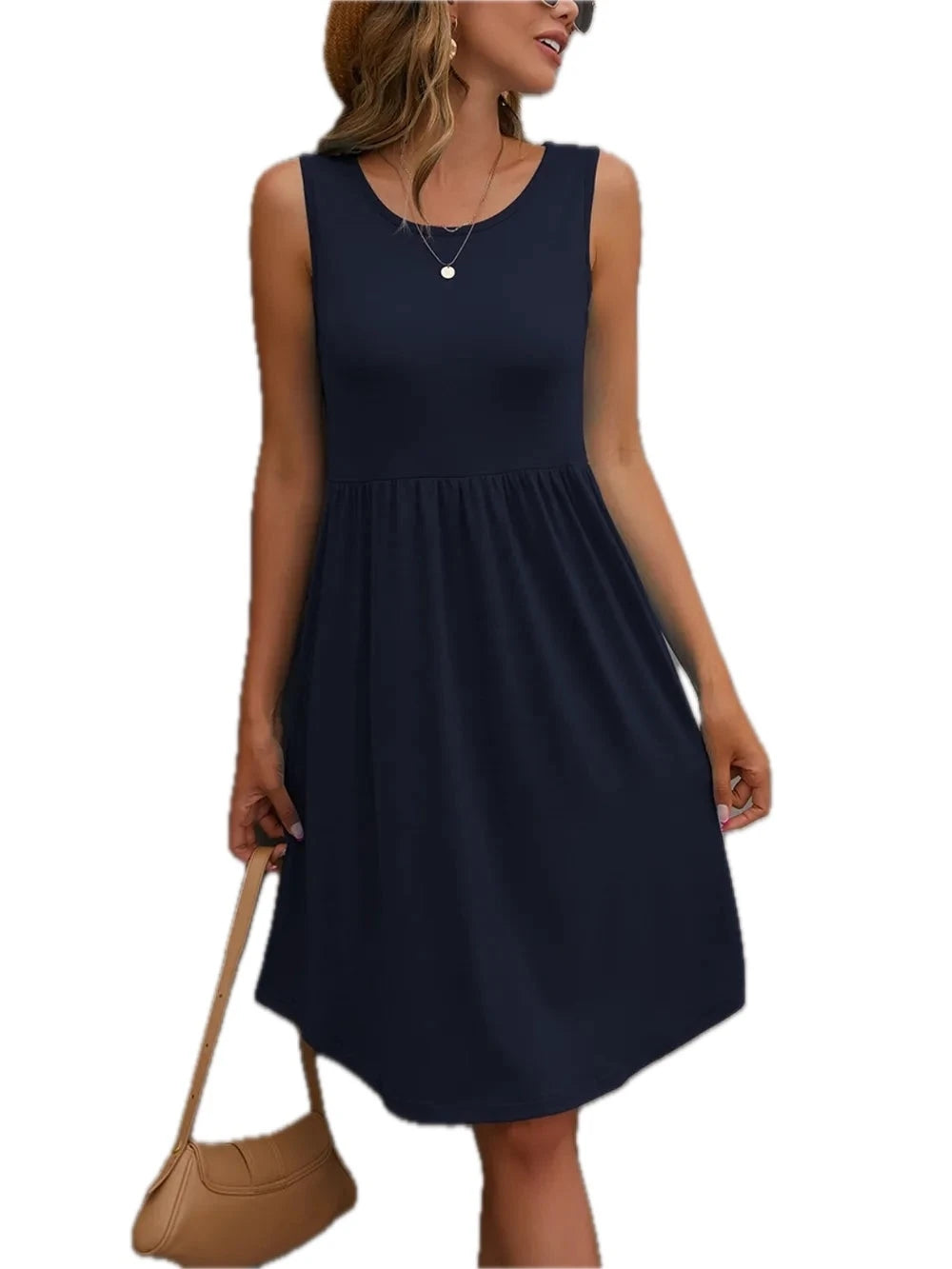Women's Round Neck Wide Strap Dress in Ninety Five % Polyester and Five % Elastane Blend for Comfortable Stretch