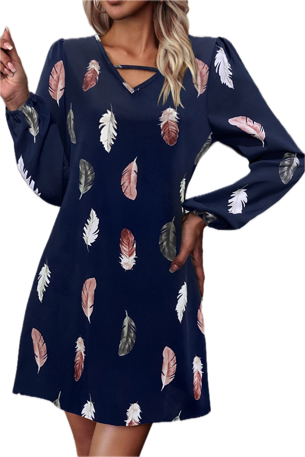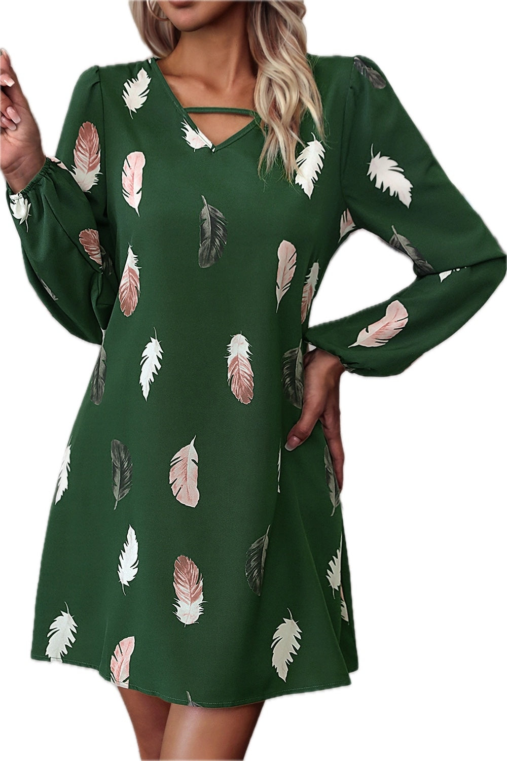 Women's Feather Print V Neck Dress 95% polyester 5% elastane Basic style not lined versatile daily day to night wear