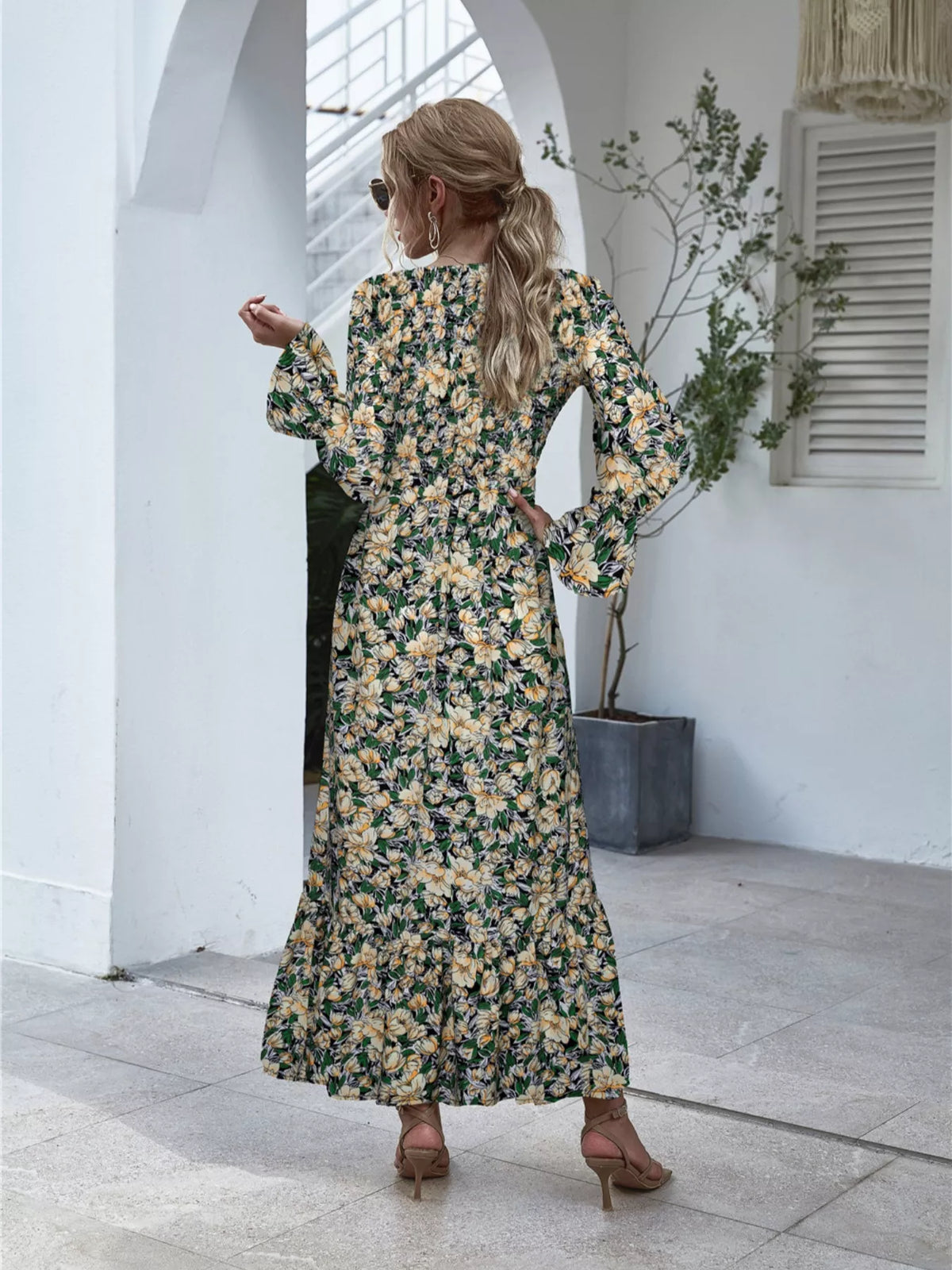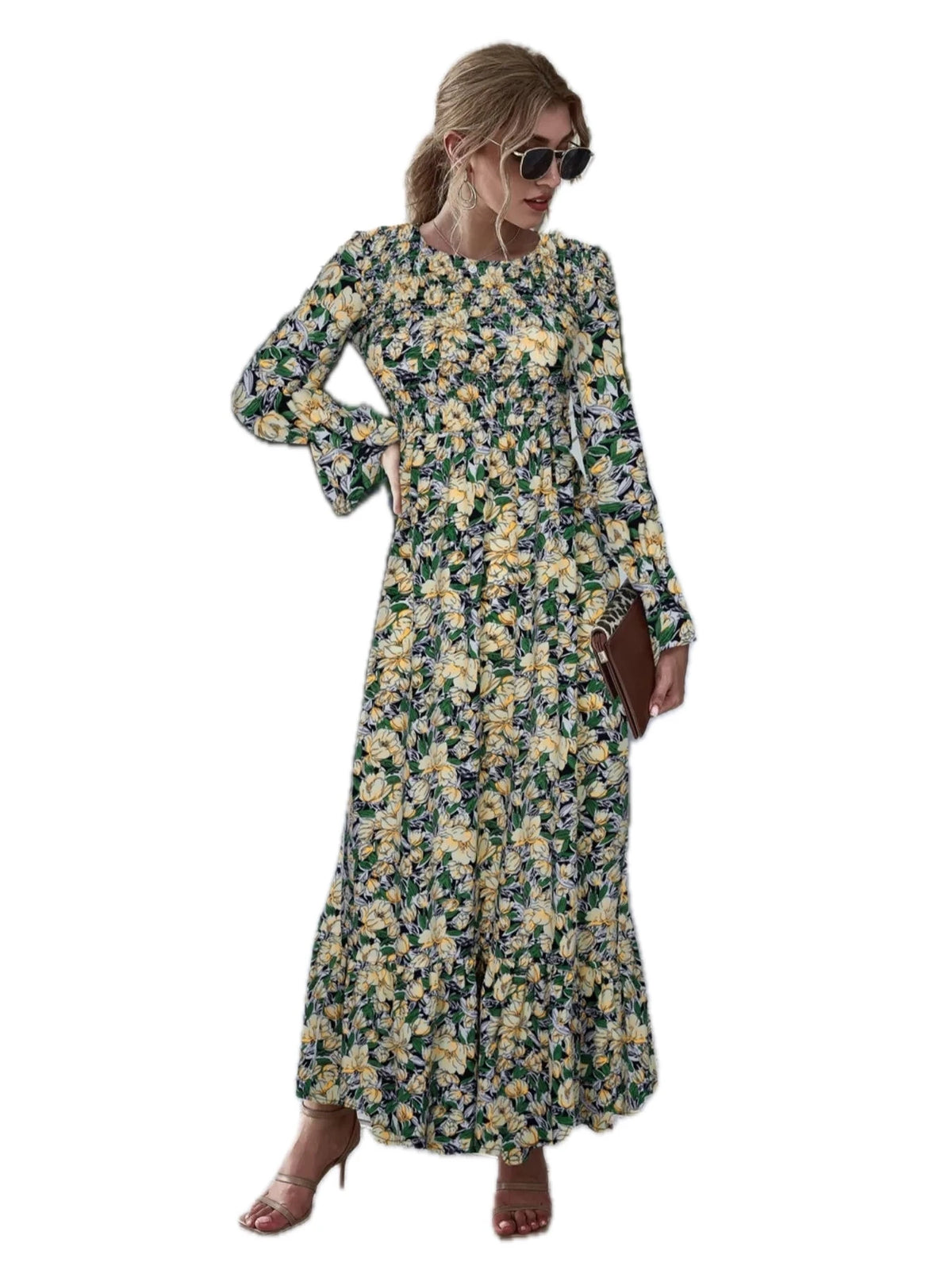 Women's Floral Flounce Sleeve Maxi Dress with Ruffles and Flowing Silhouette 95% Polyester 5% Spandex Everyday Wear