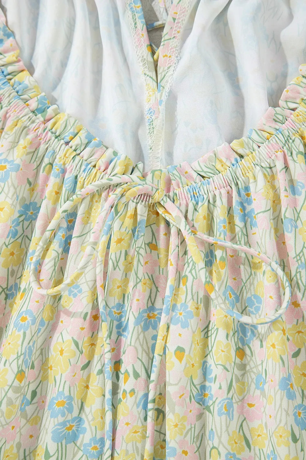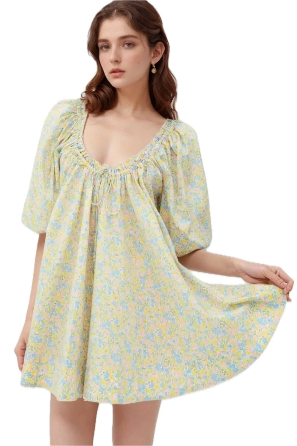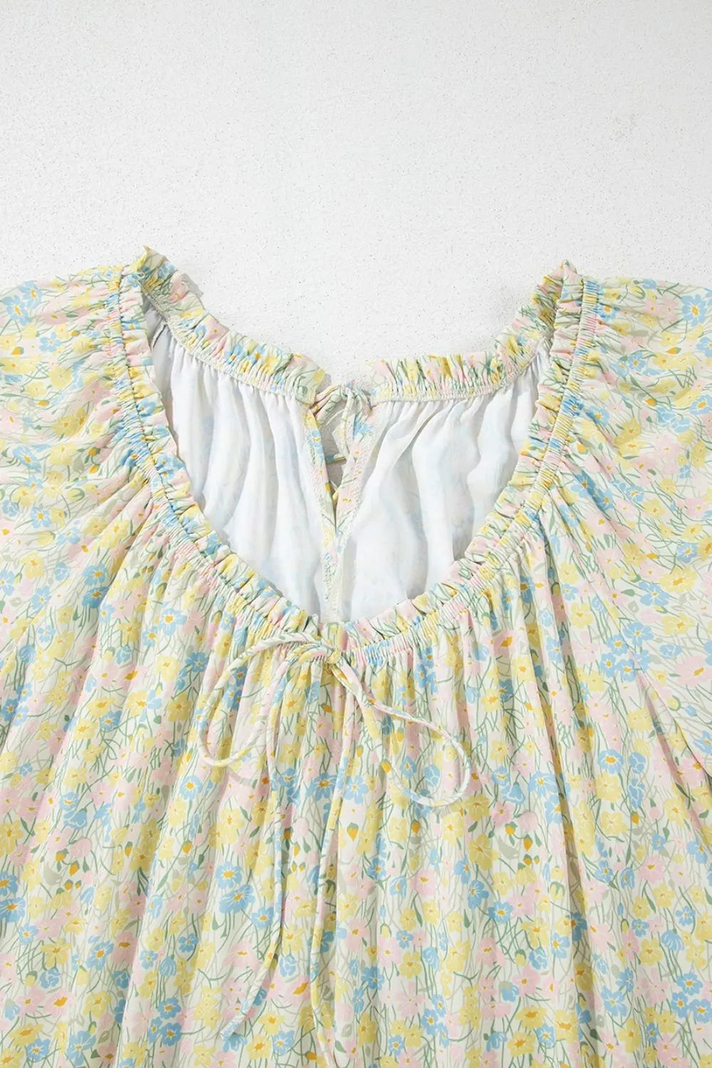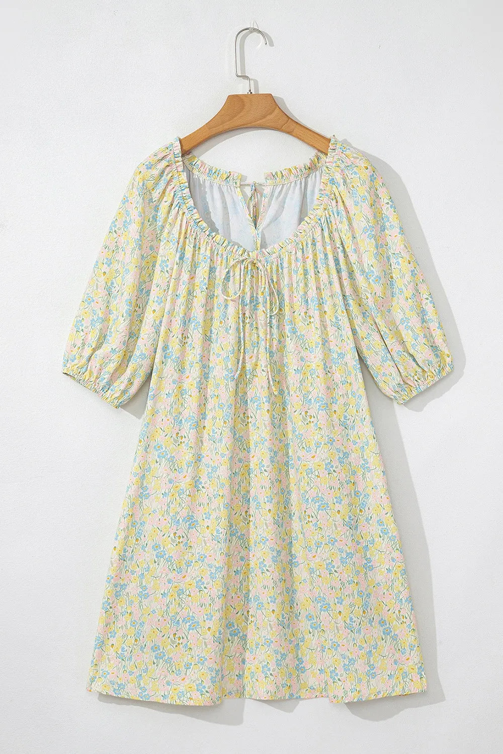 Women's Floral Half Sleeve Frilled U Neck A line Short Dress for Casual Summer Wear with 100% polyester Fabric Easy Care