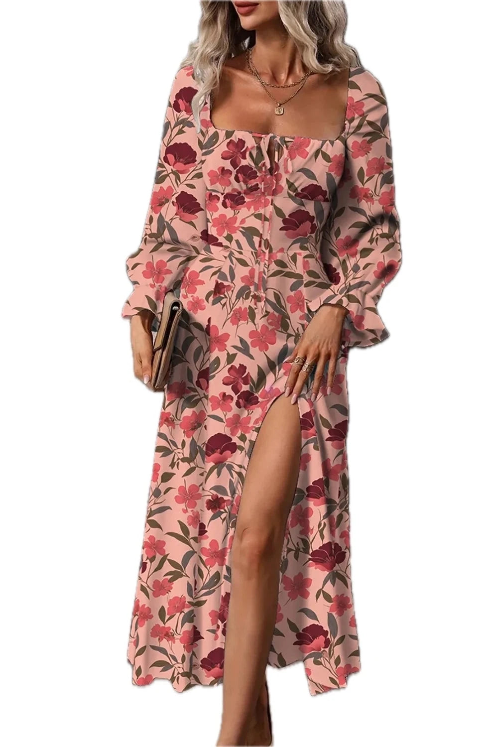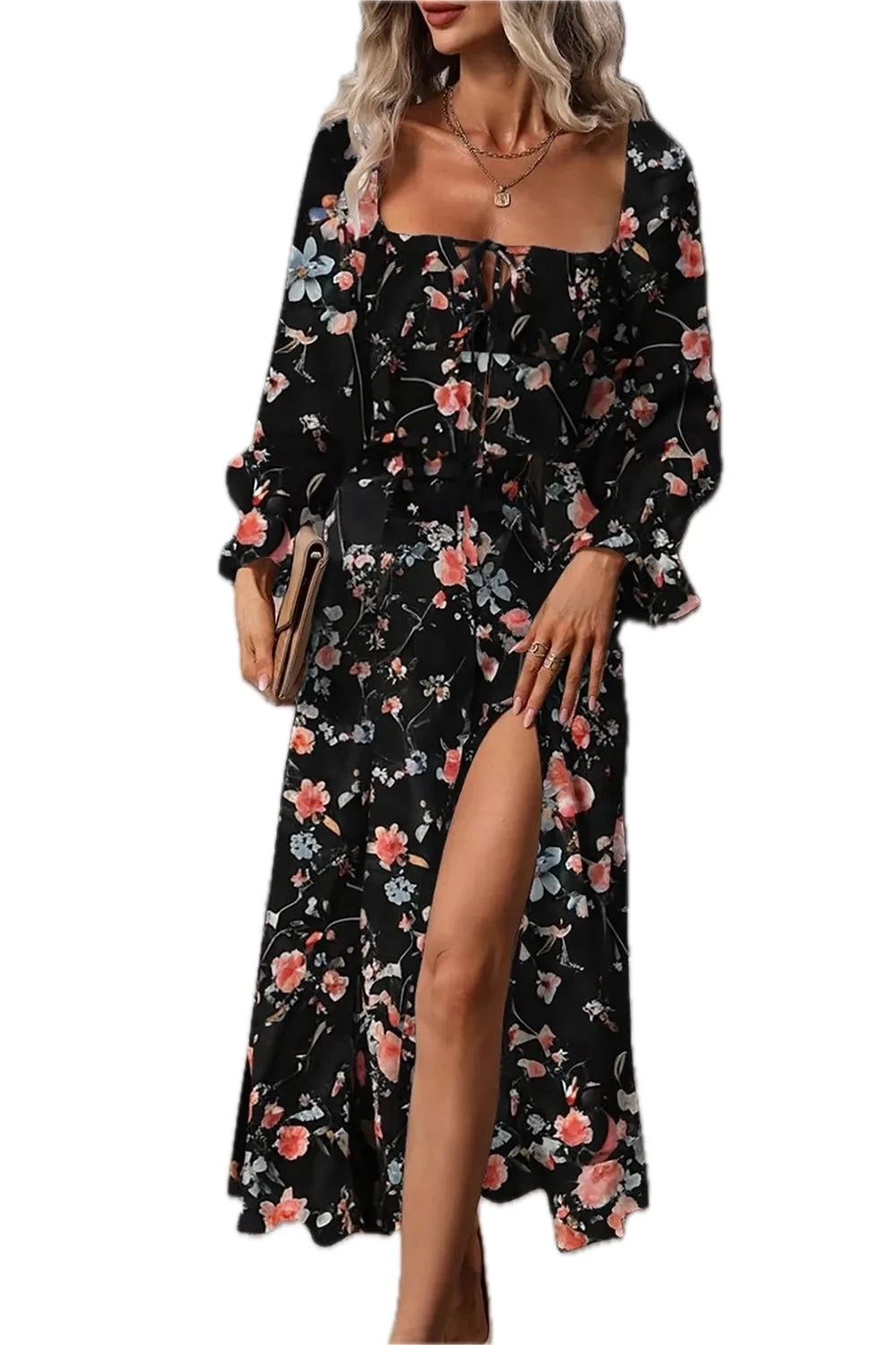 - Features:Ruffled,Slit,Tied