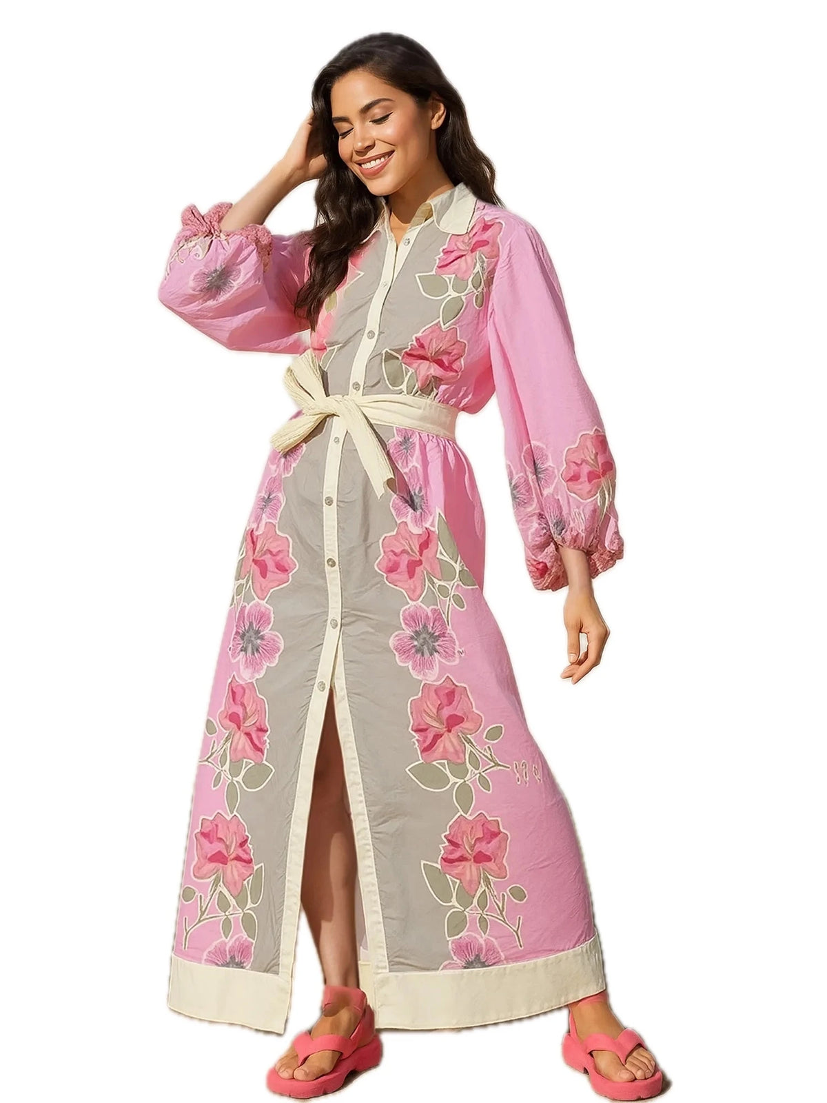 Women's Floral Print Long Sleeve Maxi Shirt Dress Buttoned Front Slit Elegant Everyday 100% Polyester Fabric Collection