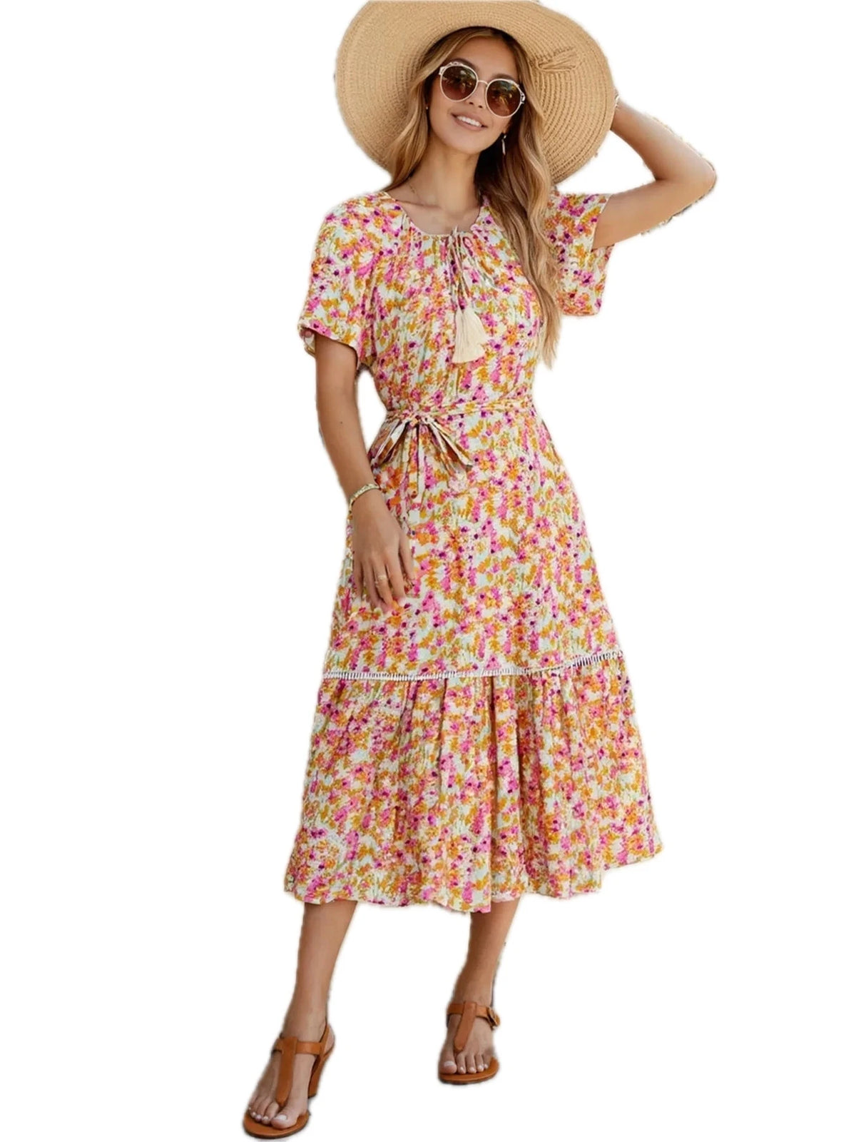 Women's Floral Print Ruffle Hem Midi Dress 100% Polyester Lightweight Easy Care for Daytime and Party Wear Everyday
