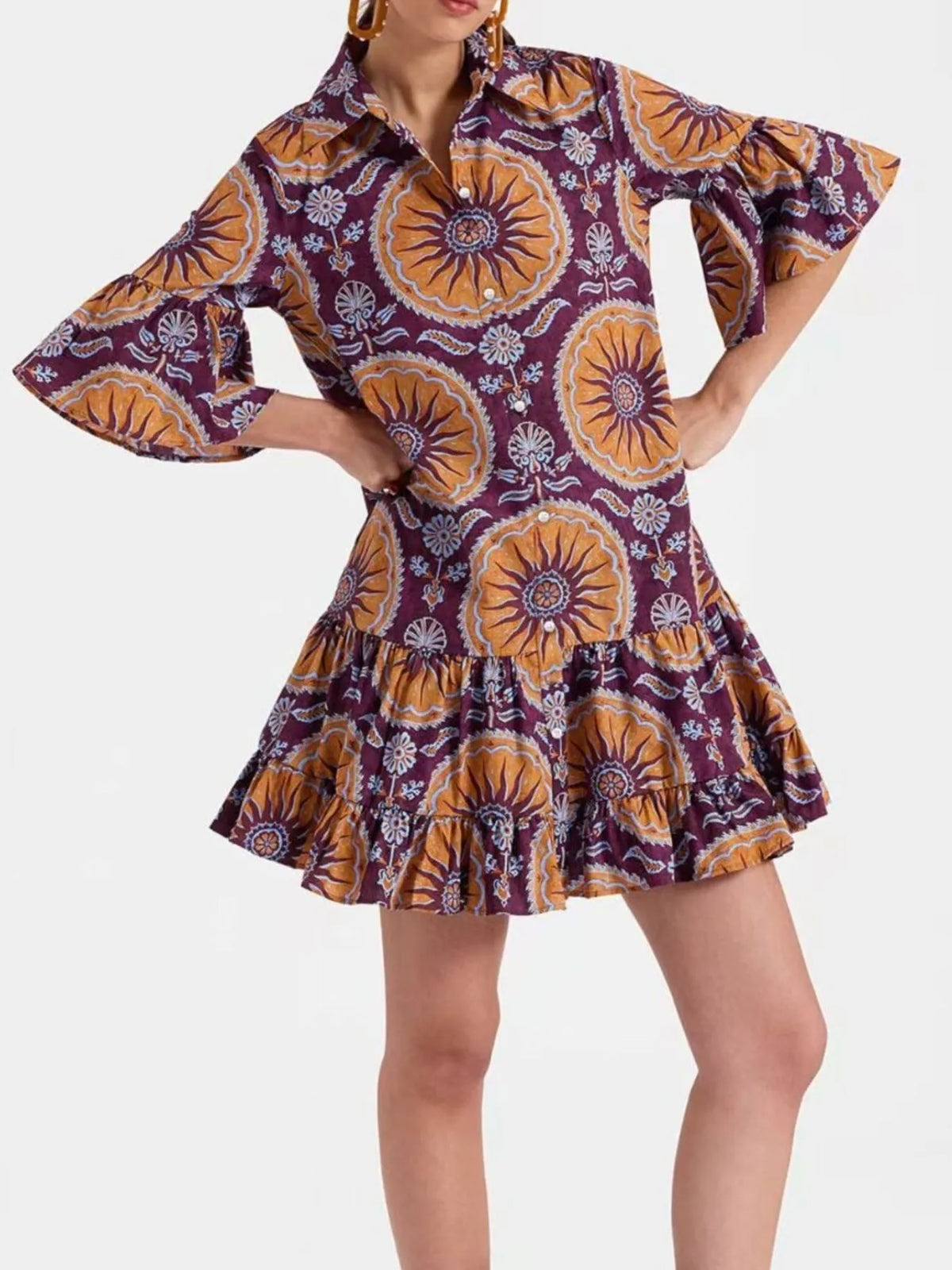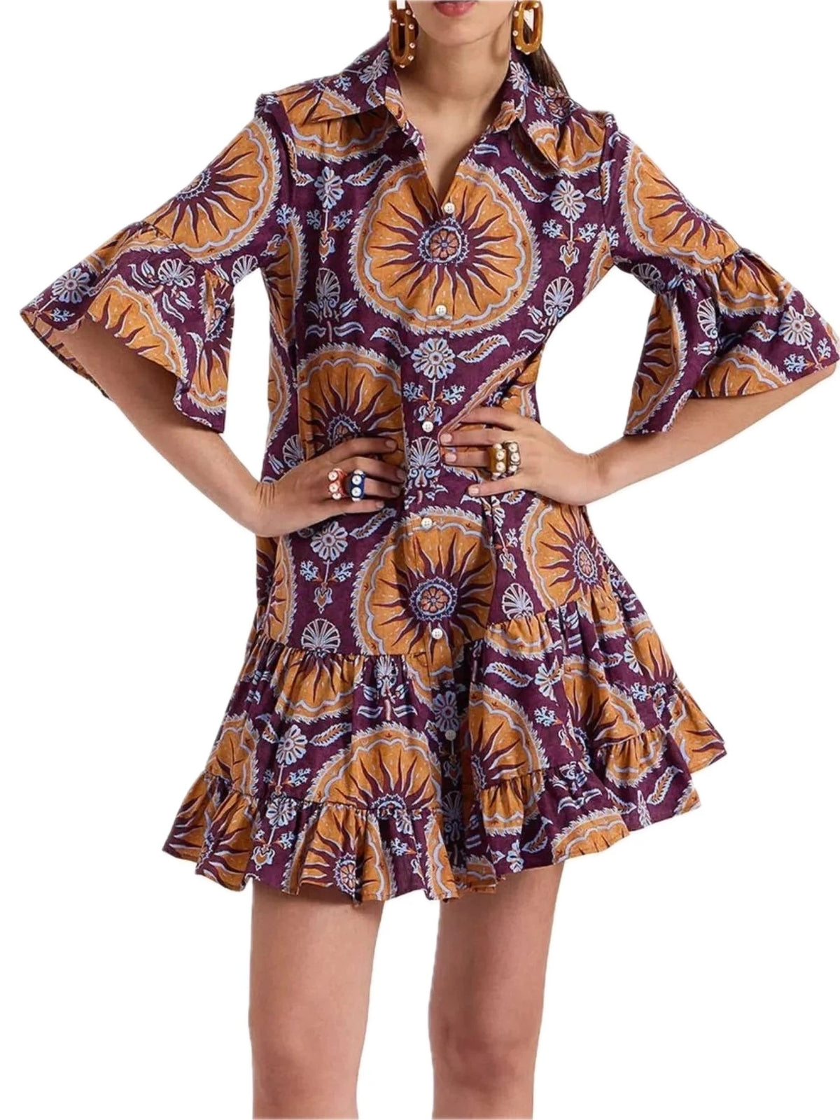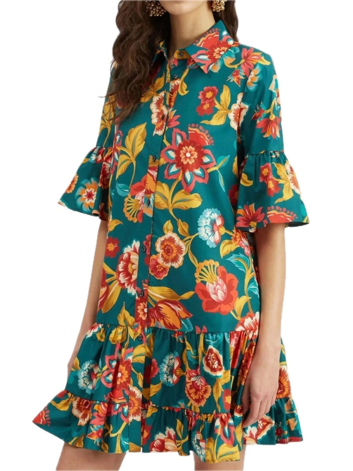 Women's Floral Print Ruffle Sleeve Mini Dress 100% Polyester Lightweight Cute Summer Party Dress for Daytime and Evening