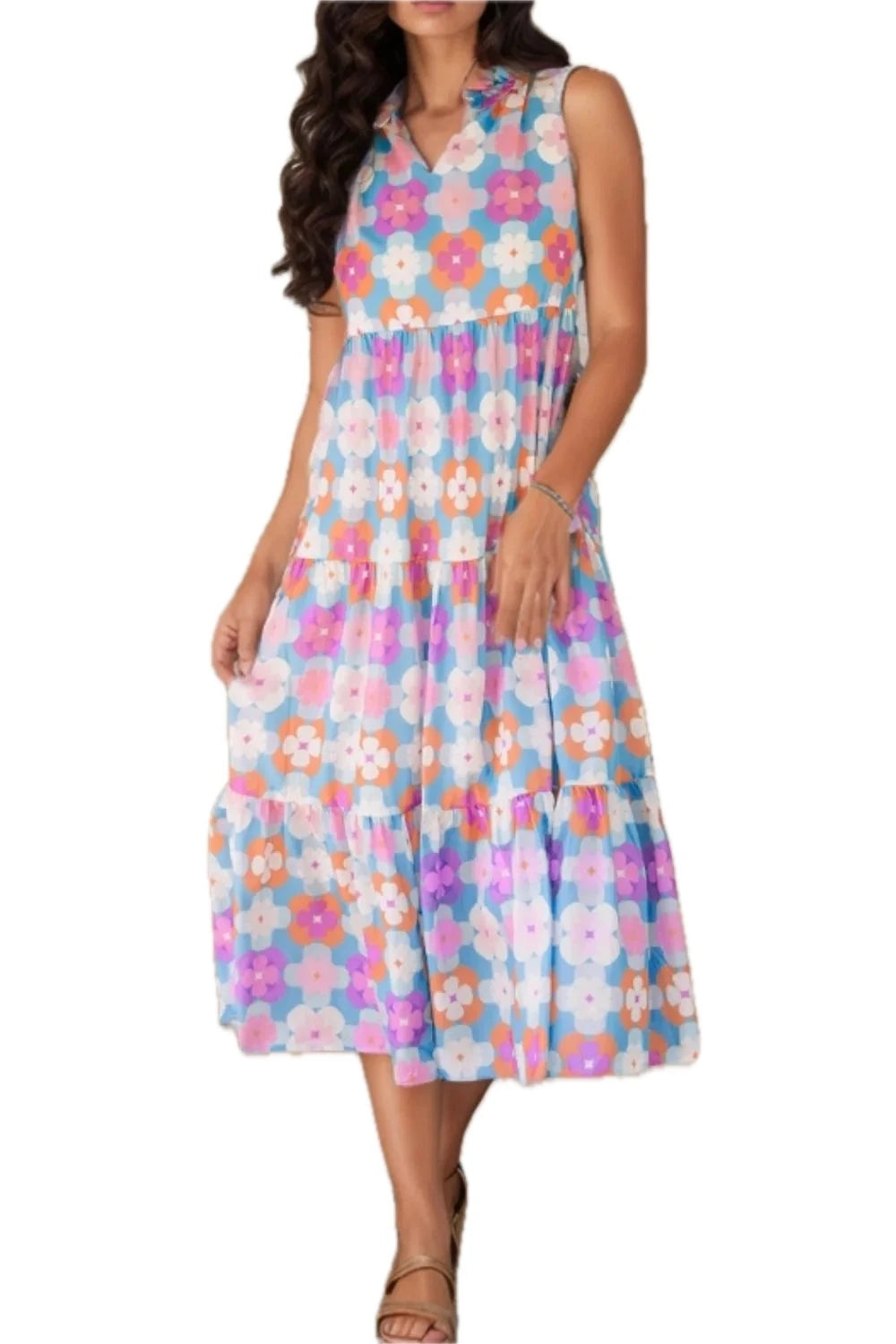Women's Floral Print Sleeveless Tiered Midi Dress 100% Polyester Fabric Perfect for Summer Parties and Events Now