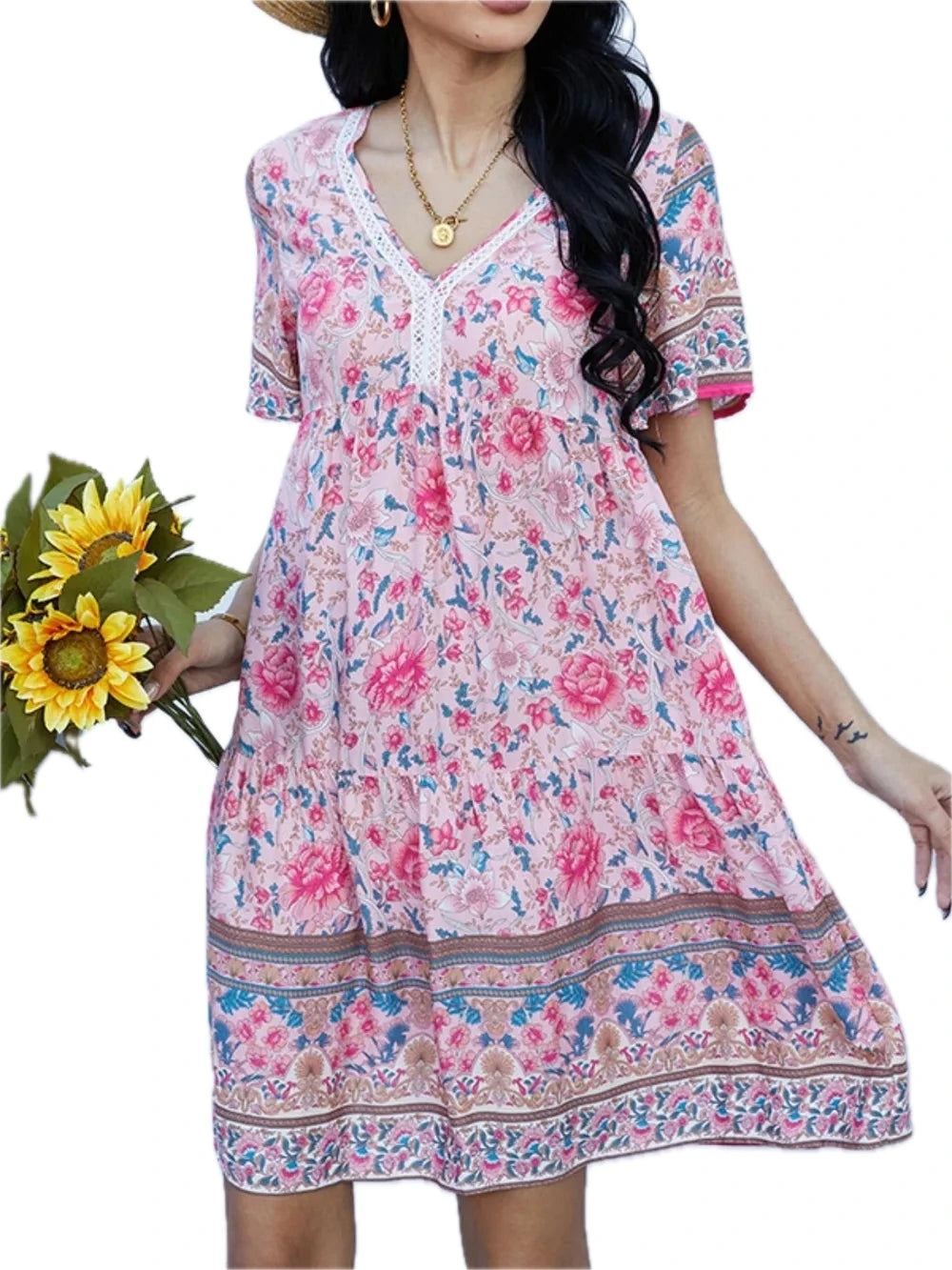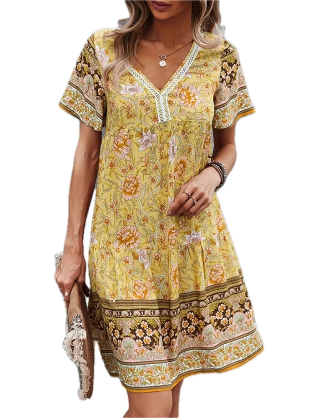 Women's Floral Print V-Neck Summer Dress 100% Cotton Lightweight Sundress for Casual Everyday Wear Beach Ready