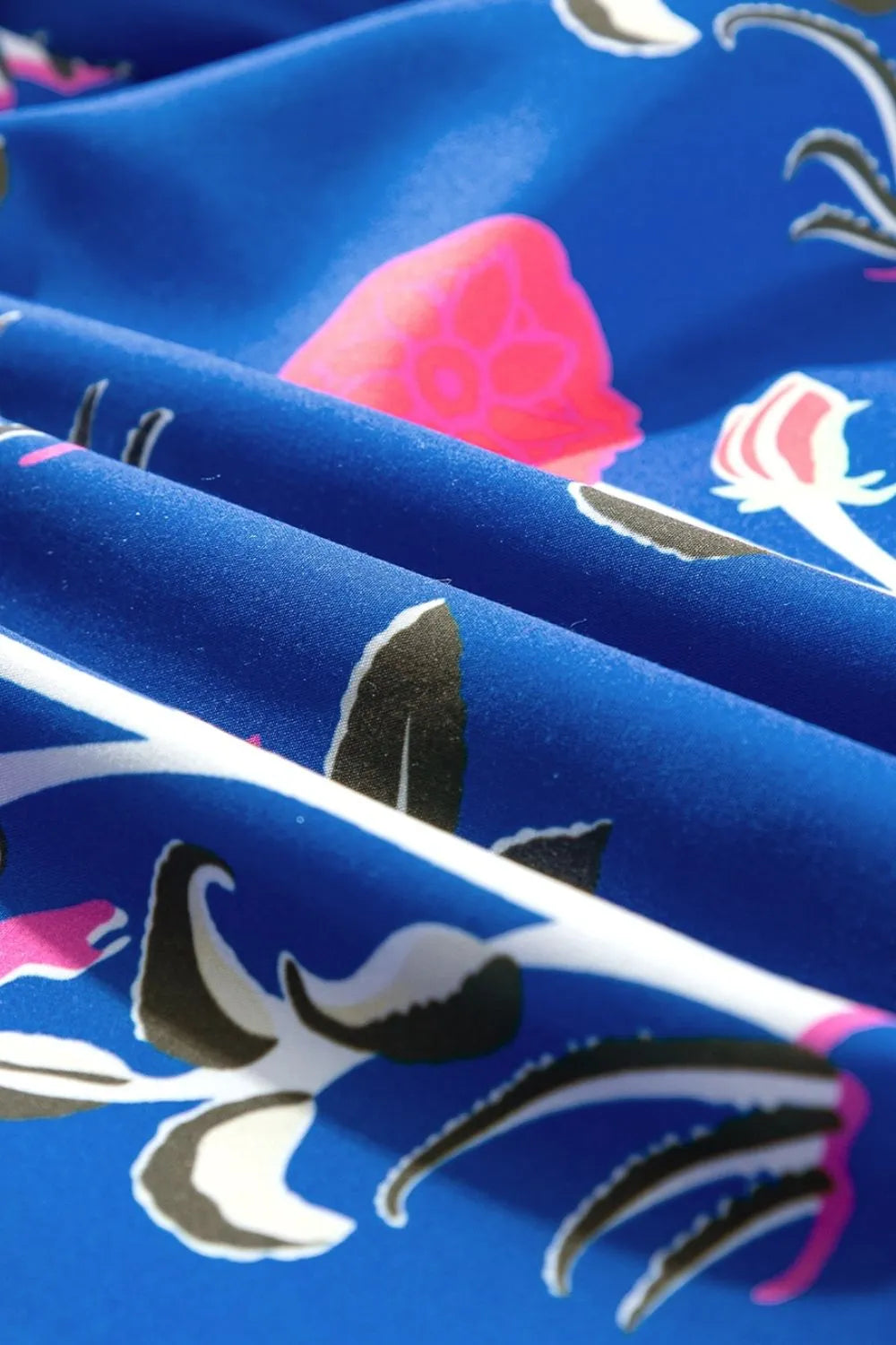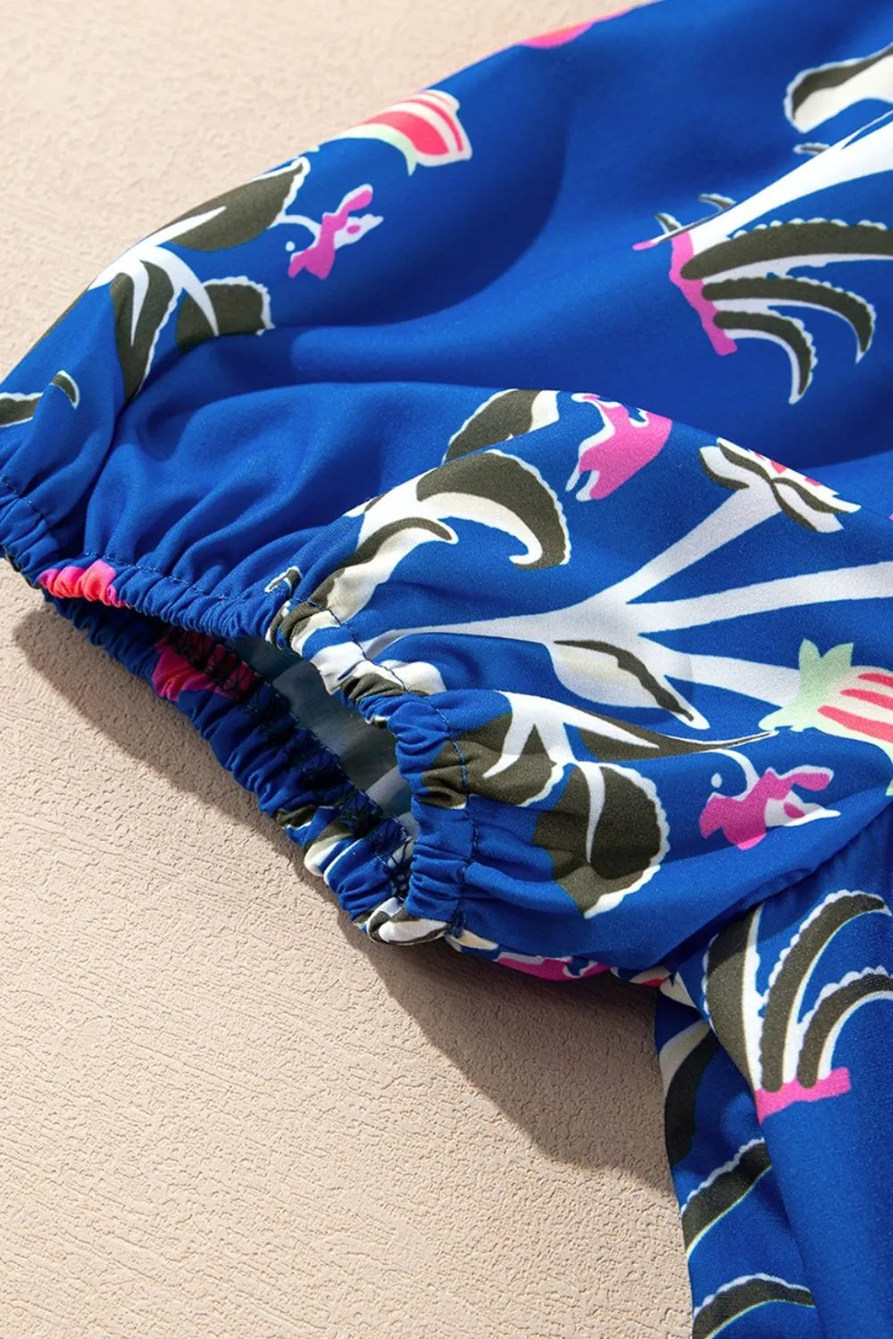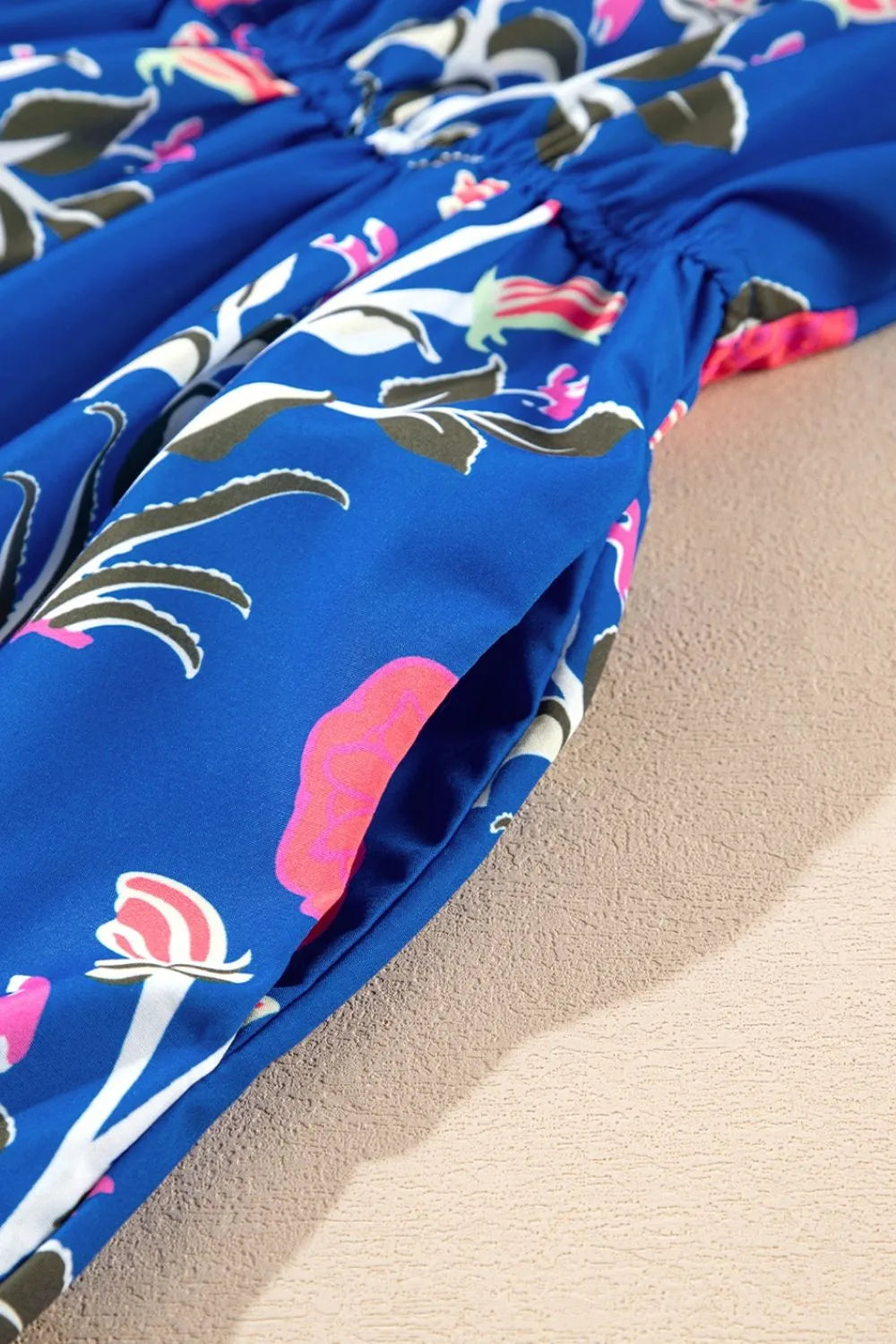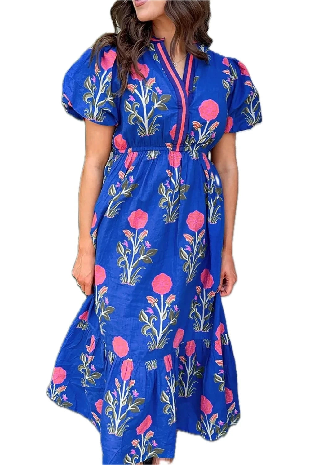 Women's Floral Puff Short Sleeve Notched High Waist Dress 100% Polyester Lightweight Breathable Everyday Party Essential
