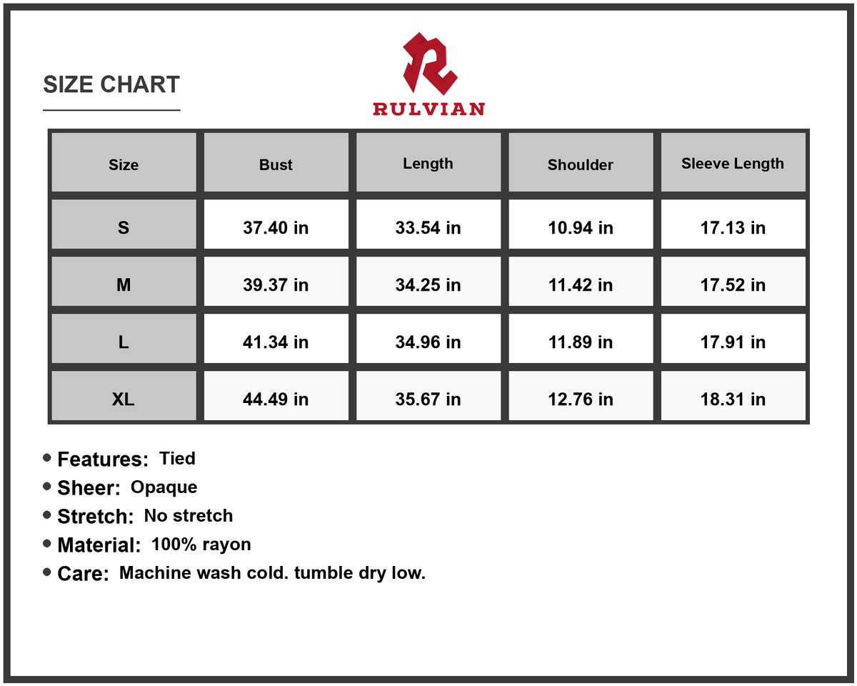 S:Bust 37.40 in, Shoulder 10.94 in, Sleeve Length 17.13 in, Length 33.54 in