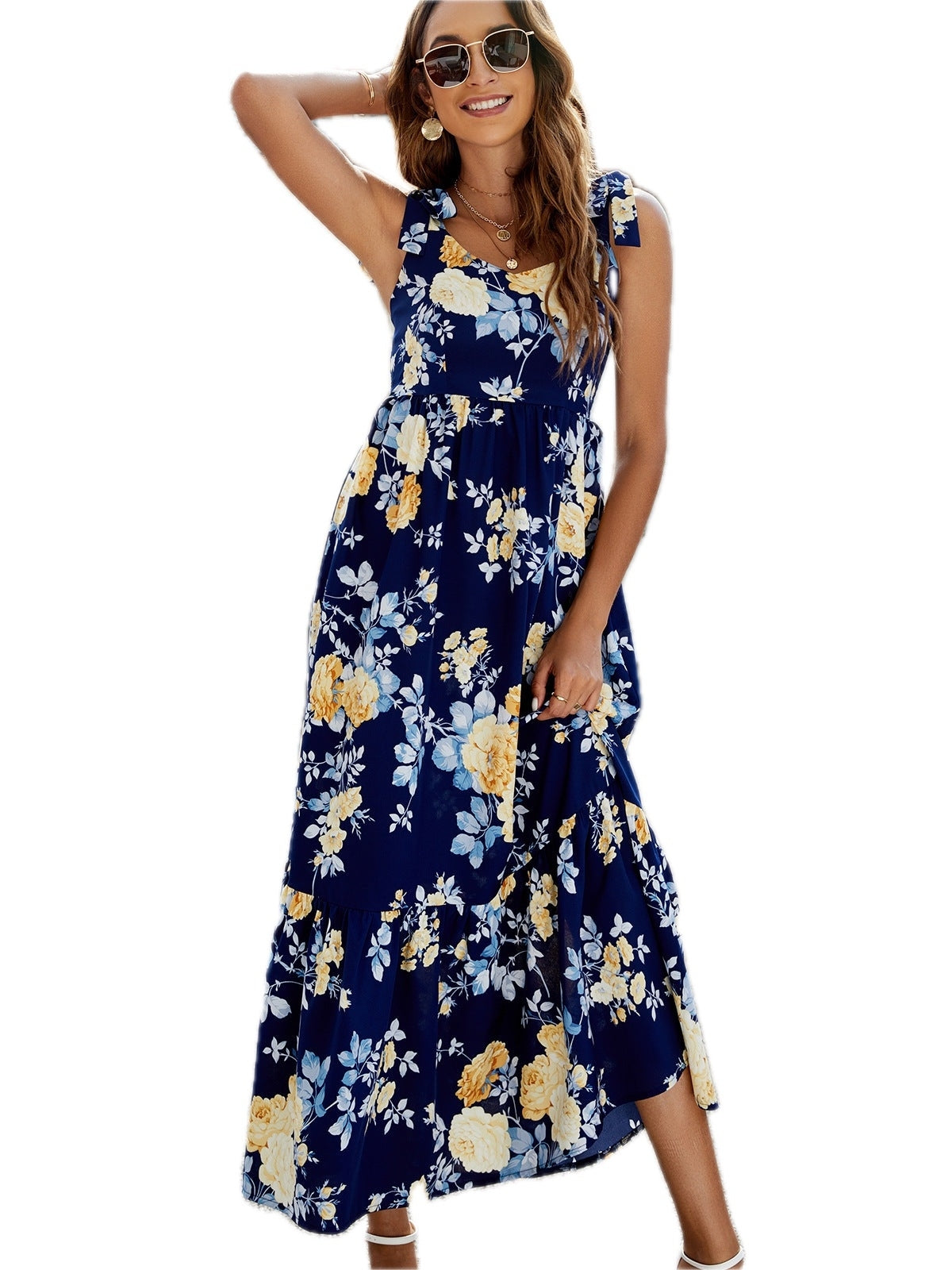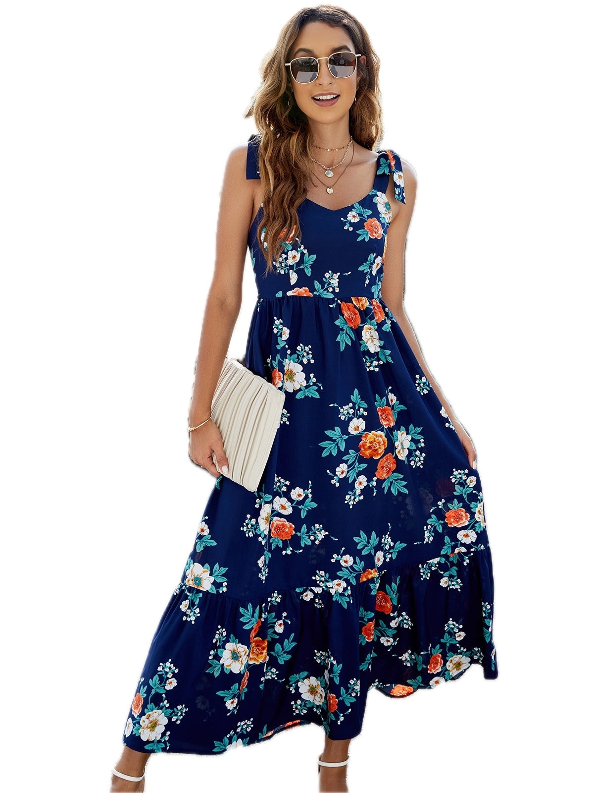 Women's Floral Tie-Shoulder Sleeveless Midi Dress V-Neck Casual Vacation Style Polyester 100% Ideal for Everyday