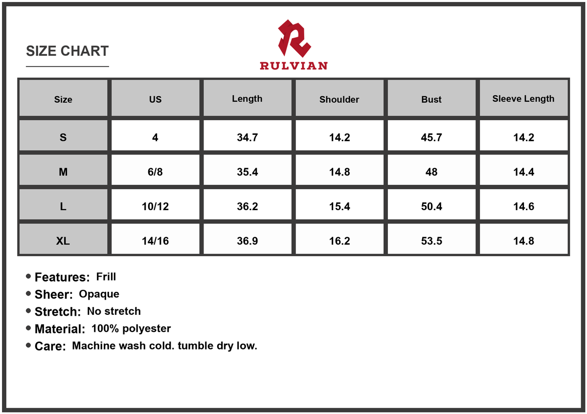 Size | US | Length | Shoulder | Bust | Sleeve Length |